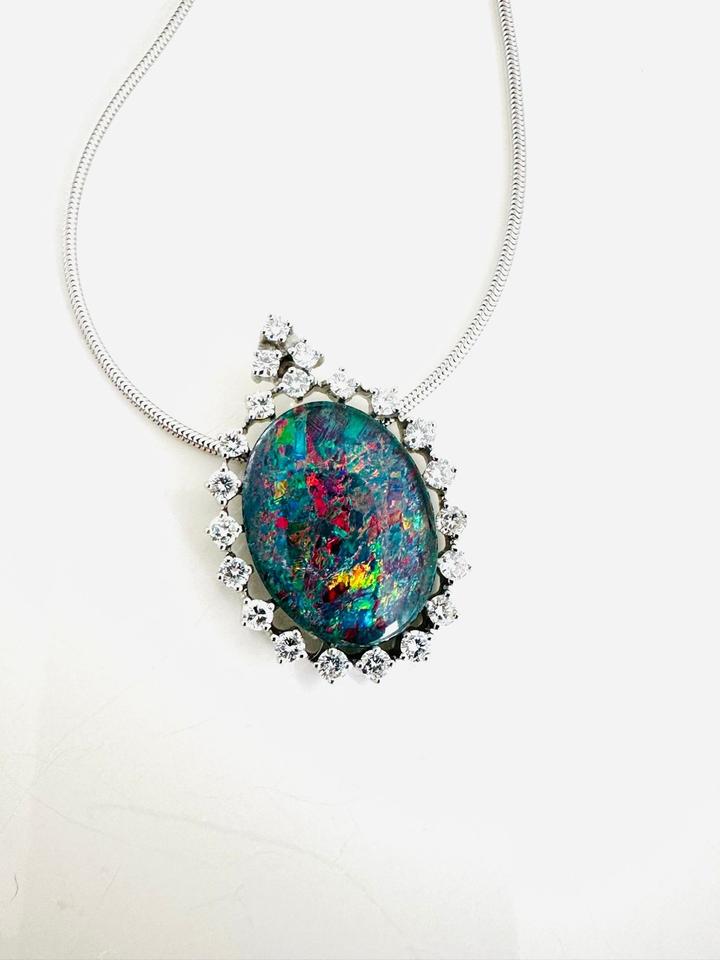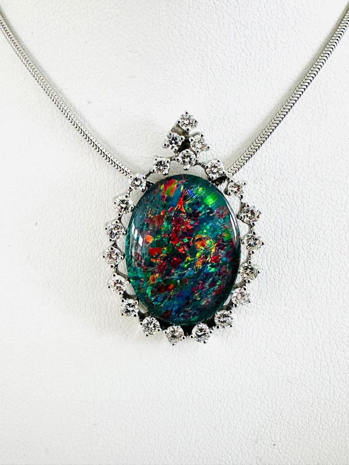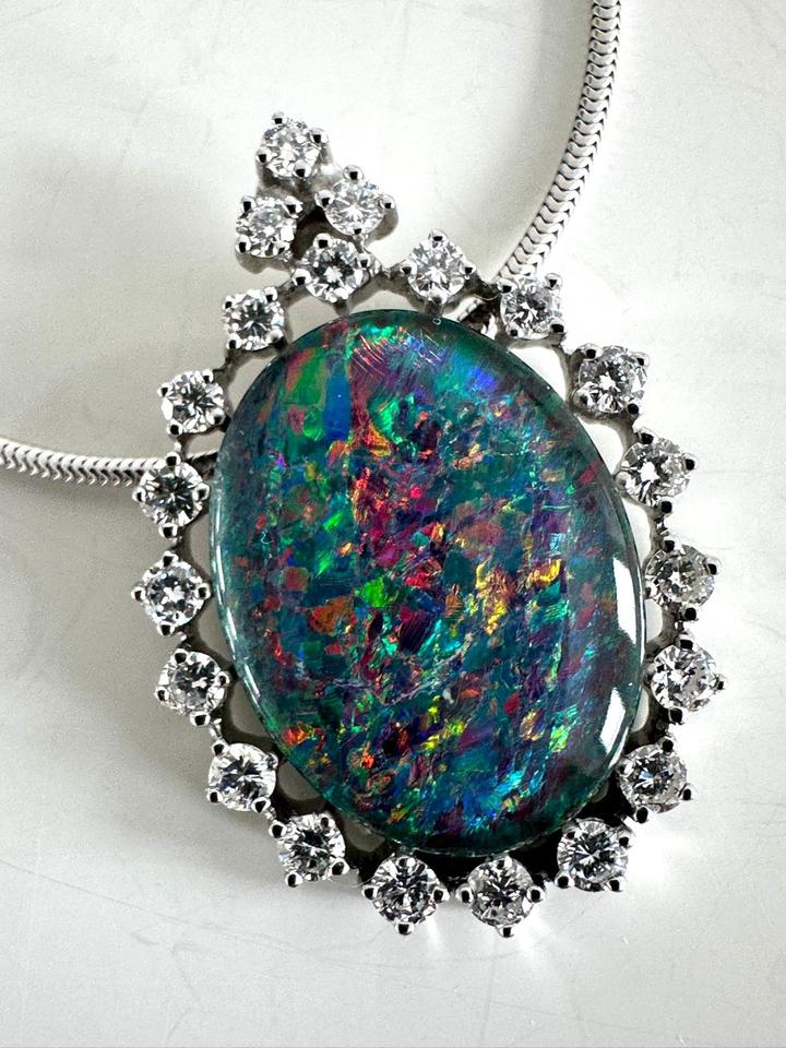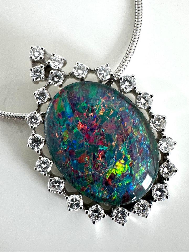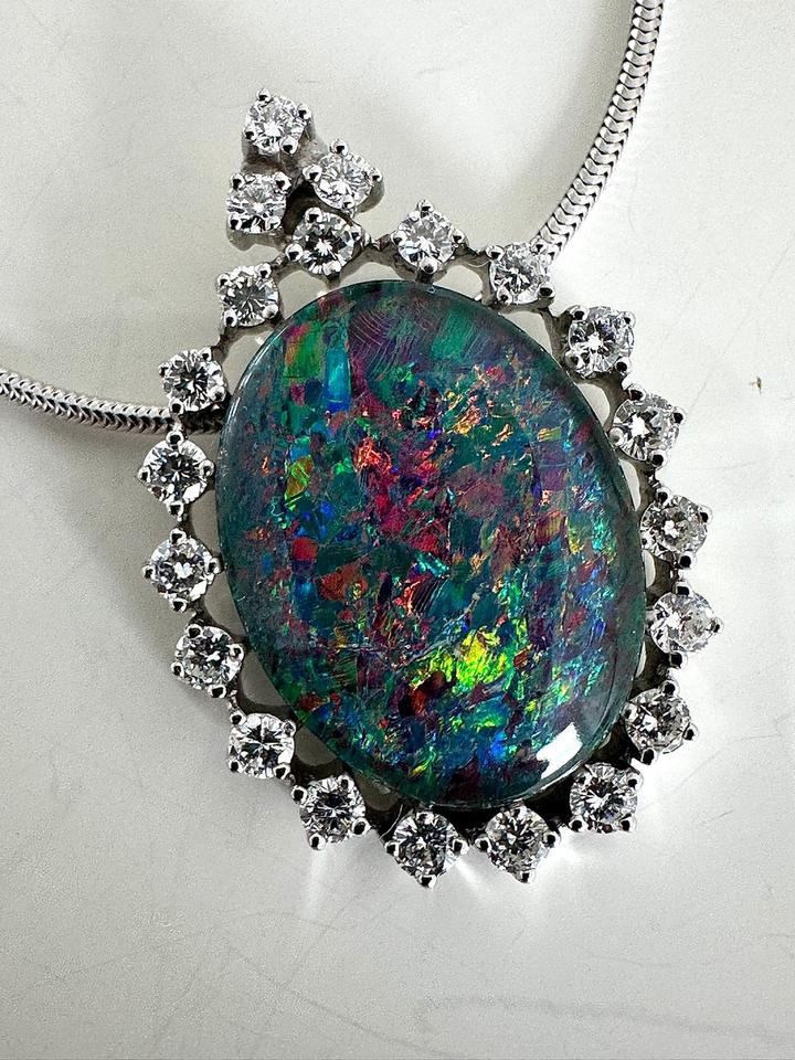 Anhänger 585/- Weißgold mit Opal und Brillianten 1,15 ct Tw/Lupenrein Mit Opal-Triplette 31×21,5 mm Juwelierpreis 4260,- Angebot 2550,- Preis ohne Kette. Kette kann zusätzlich geliefert werden Das ist ein Festpreis, Versand mit Vorkasse möglich