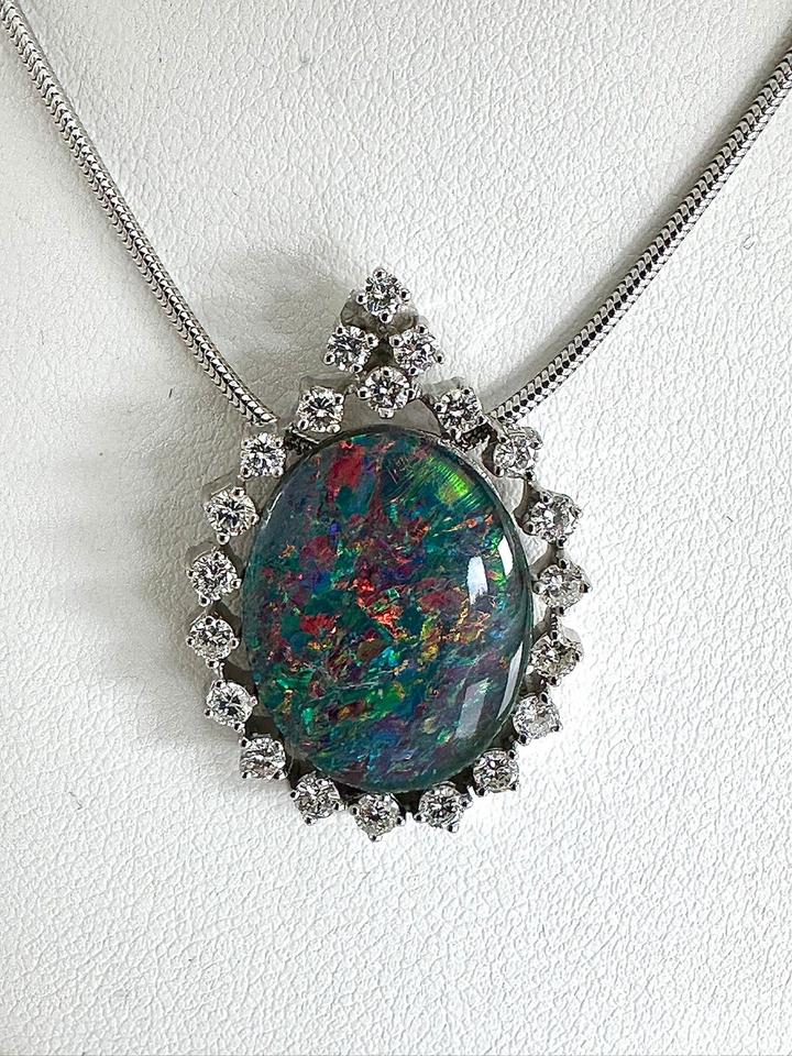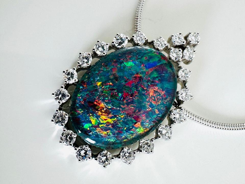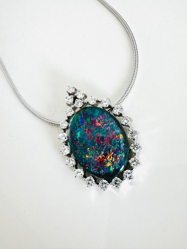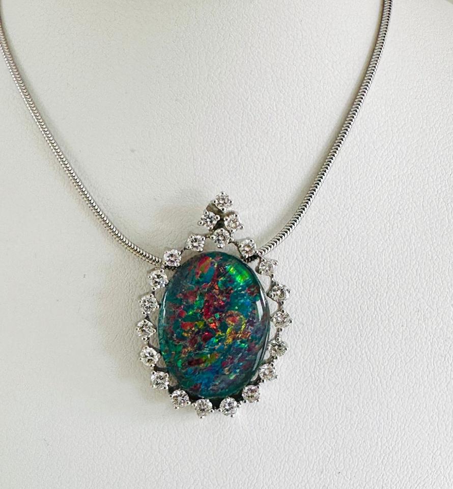 Anhänger 585/- Weißgold mit Opal und Brillianten 1,15 ct Tw/Lupenrein Mit Opal-Triplette 31×21,5 mm Juwelierpreis 4260,- Angebot 2550,- Preis ohne Kette. Kette kann zusätzlich geliefert werden Das ist ein Festpreis, Versand mit Vorkasse möglich