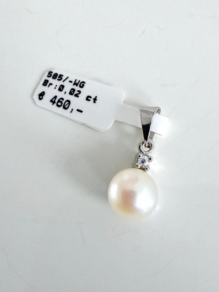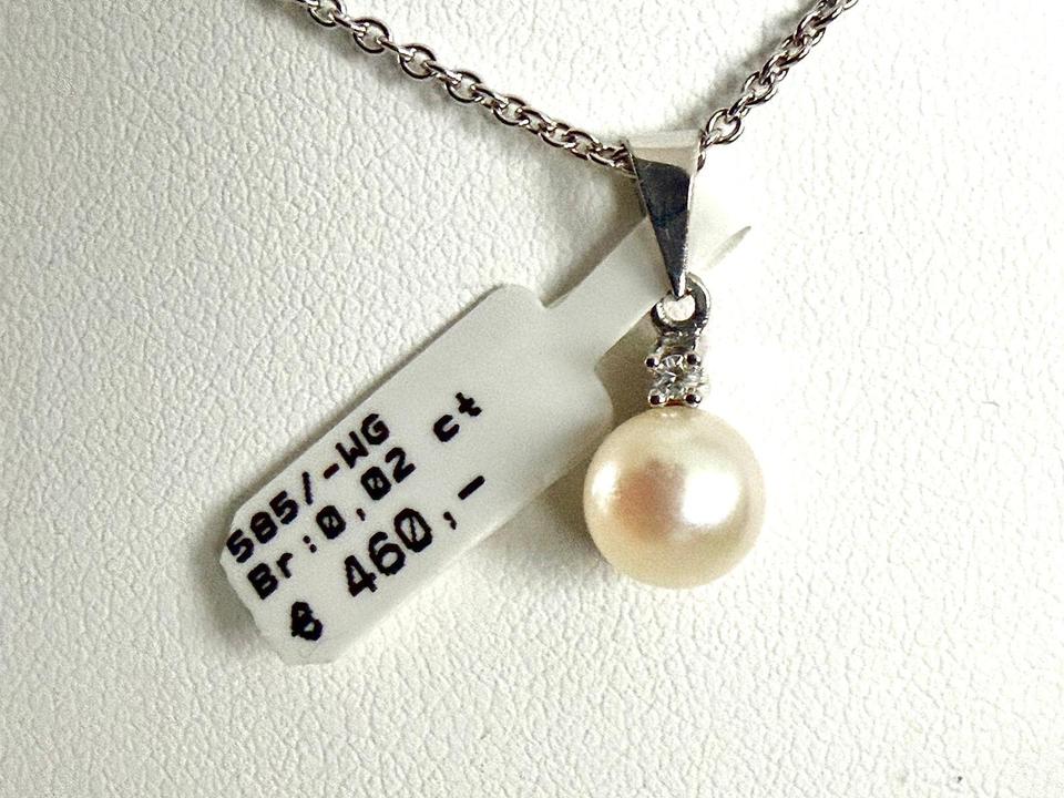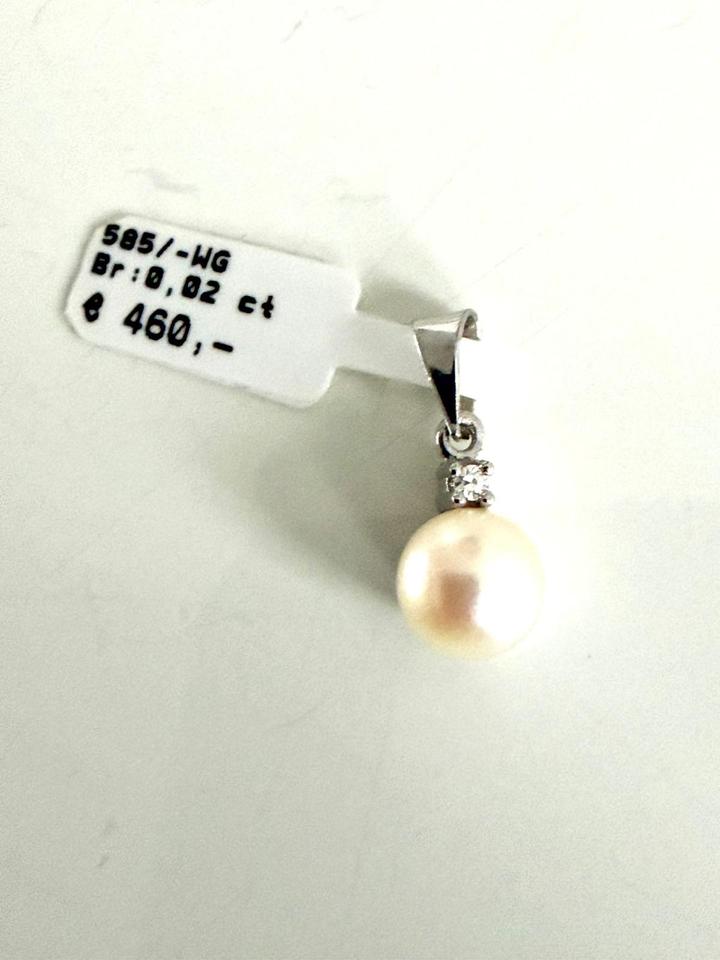 Anhänger 585/- Weißgold mit Zuchtperle und Brilliant 0,02 ct Tw/si 1,29 Gramm Perldurchmesser 7,3 mm Juwelierpreis 460,- Angebot 320,- Das ist ein Festpreis, Versand gegen Vorkasse möglich