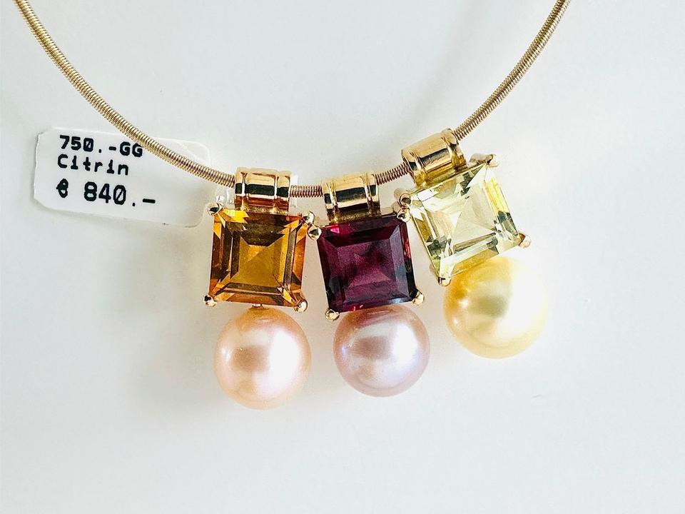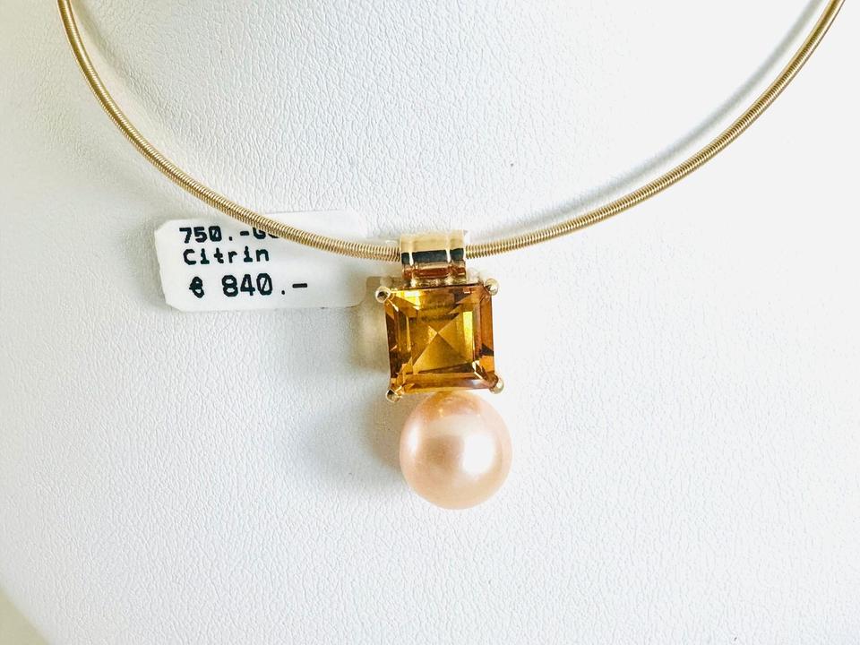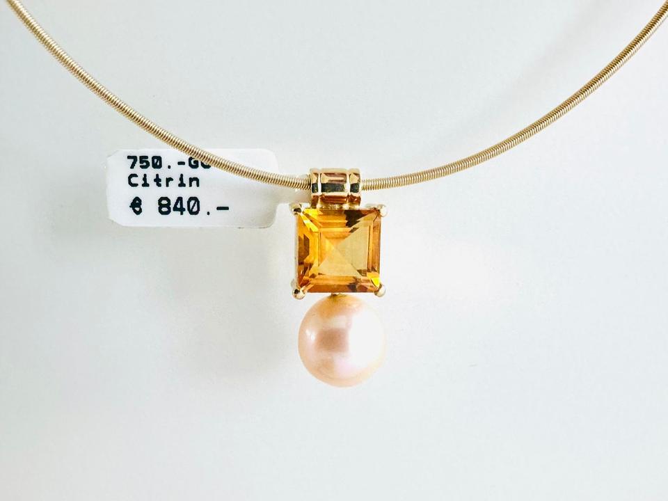 Anhänger 750/- Gold mit Zuchtperle und Citrin Breite 9,3 mm 3,73 Gramm Perle 9,2 mm Handarbeit Kann auch mit anderen Farbsteinen geliefert werden. Siehe Fotos. Juwelierpreis 1160,/ Angebot 680,- Preis ohne Reif. Das ist ein Festpreis, Vers…
