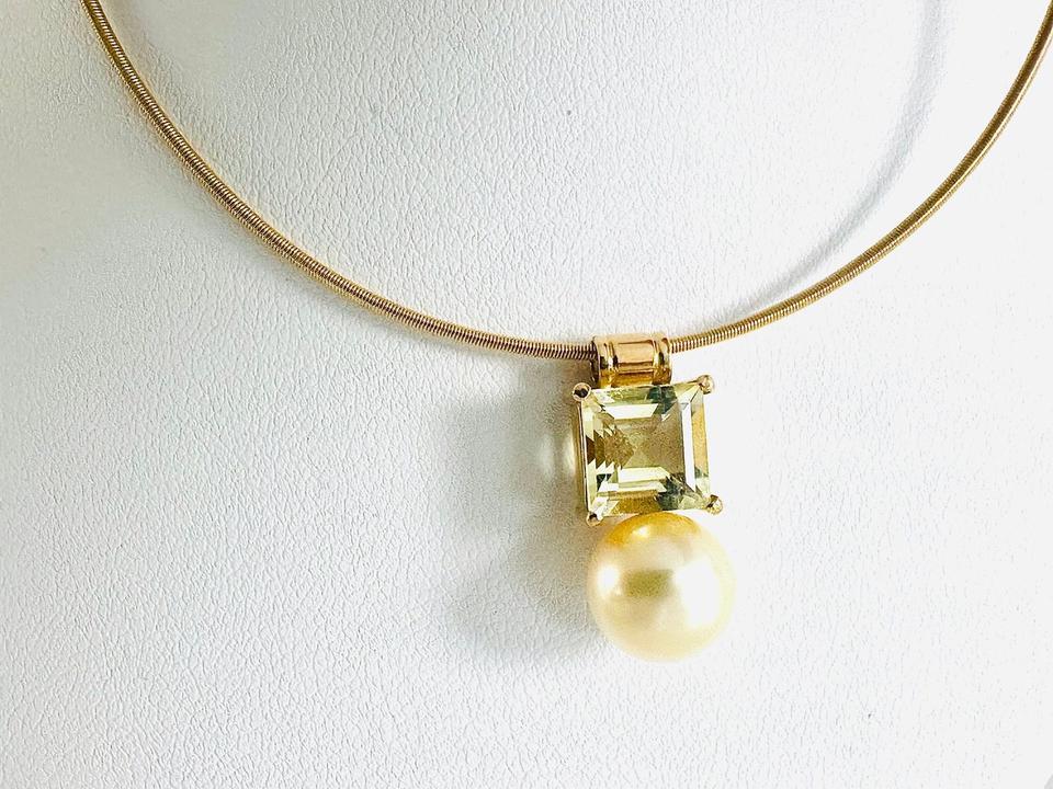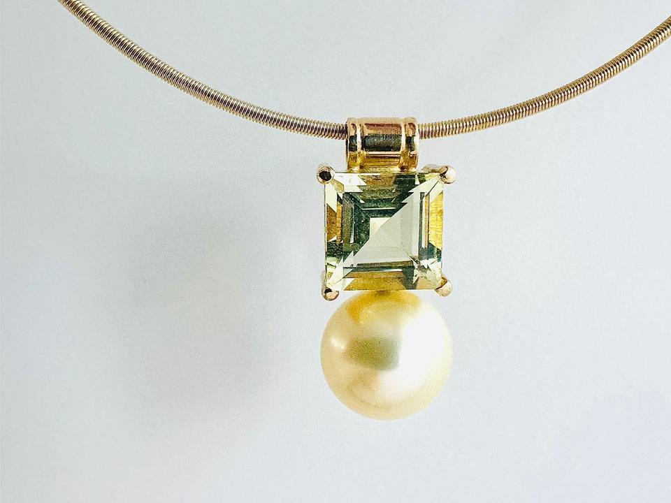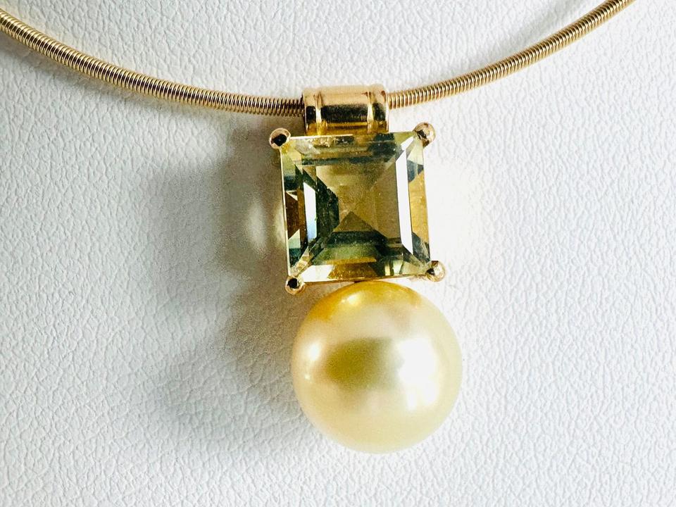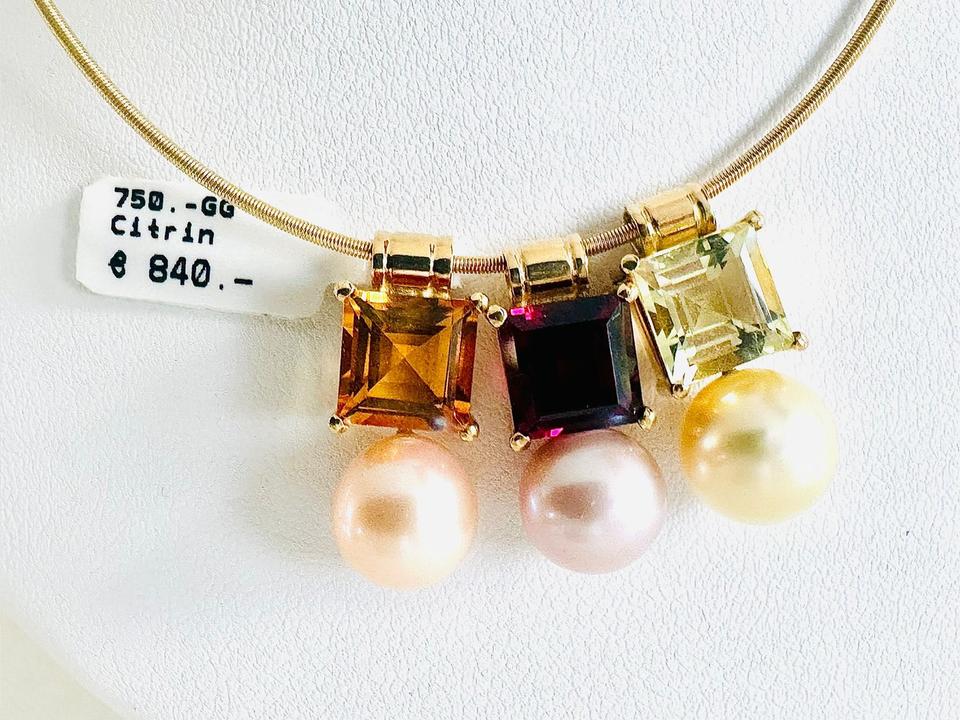 Anhänger 750/- Gold mit Zuchtperle und Turmalin