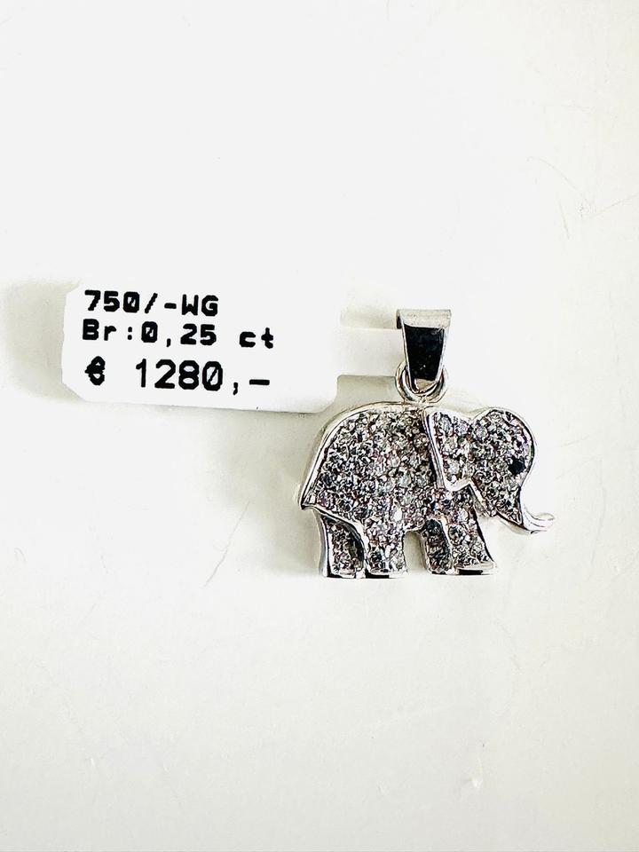 Anhänger 750/- Weißgold Elefant mit Brillianten 0,25 ct w/si