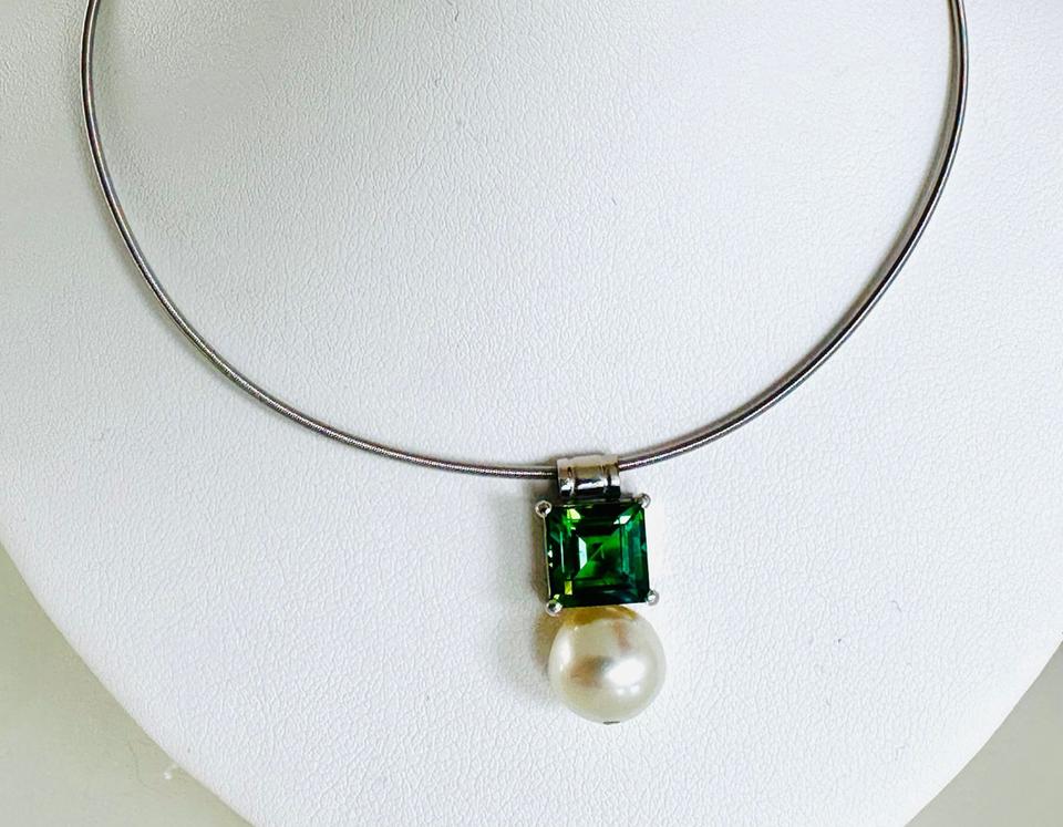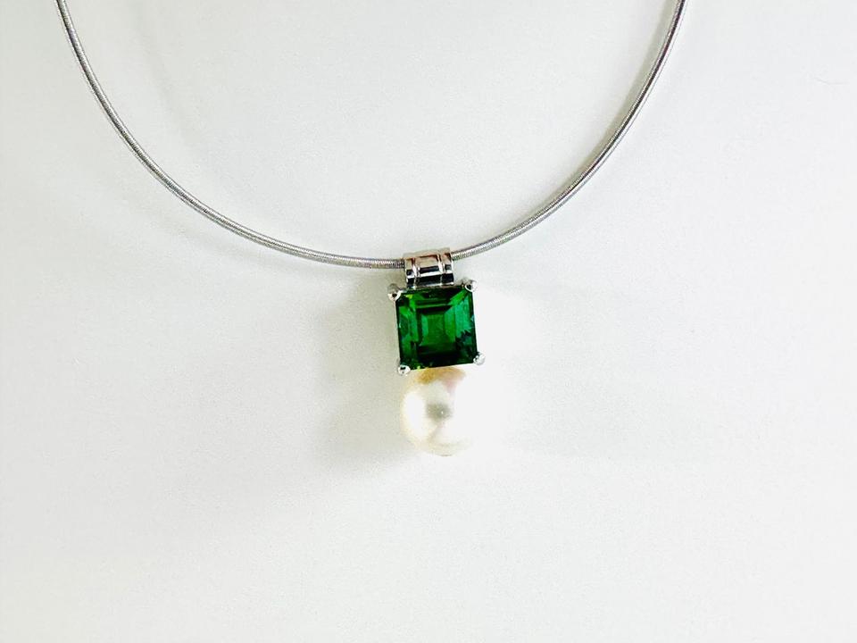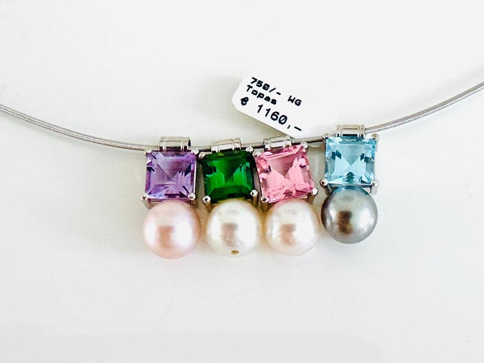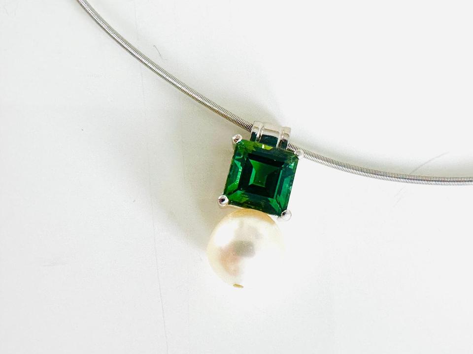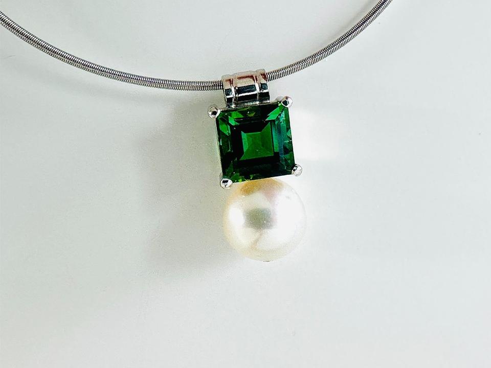 Anhänger 750/- Weißgold mit Turmalin und Perle