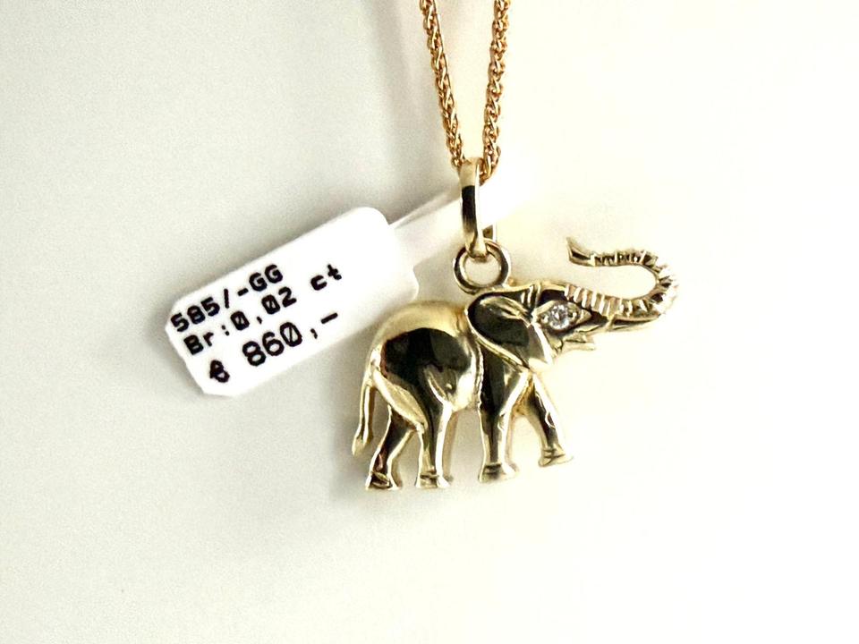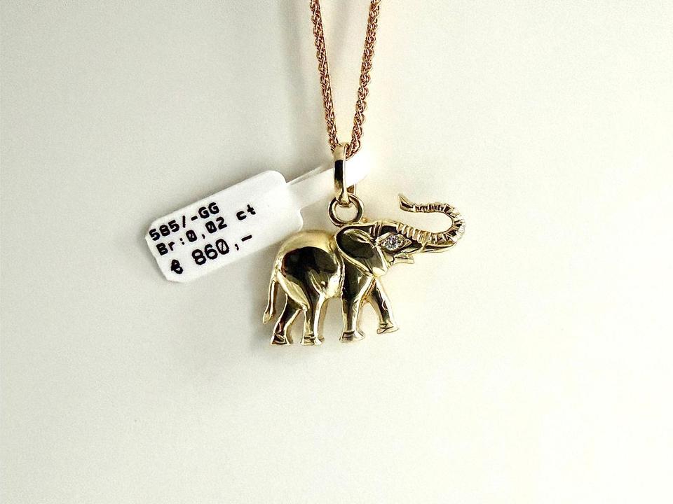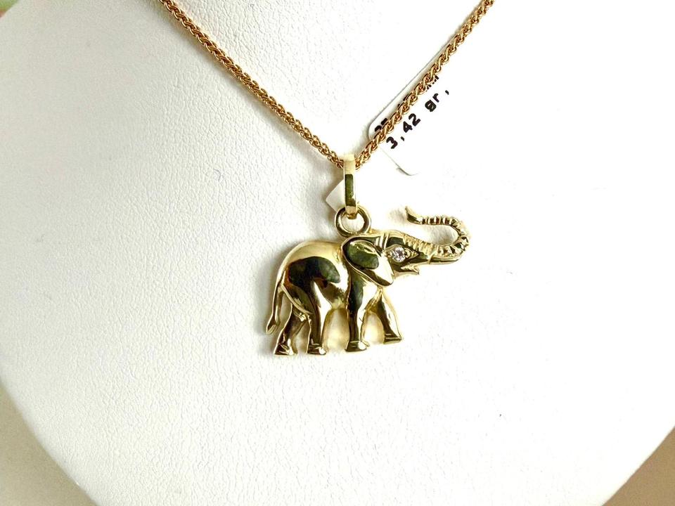 Anhänger Elefant 585/- Gold mit Brilliant 0,02 ct Tw/si 3,42 Gramm 25×17 mm Juwelierpreis 860,- Angebot 490,- Preis ohne Kette. Kette kann zusätzlich geliefert werden. Das ist ein Festpreis, Versand gegen Vorkasse möglich