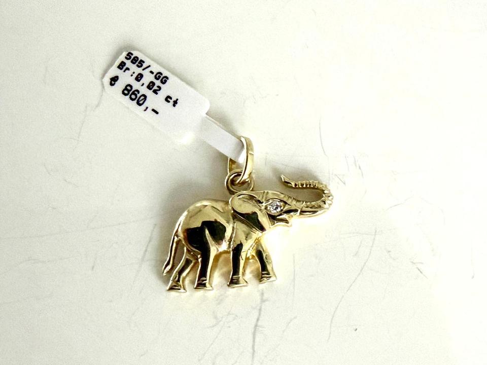 Anhänger Elefant 585/- Gold mit Brilliant 0,02 ct Tw/si