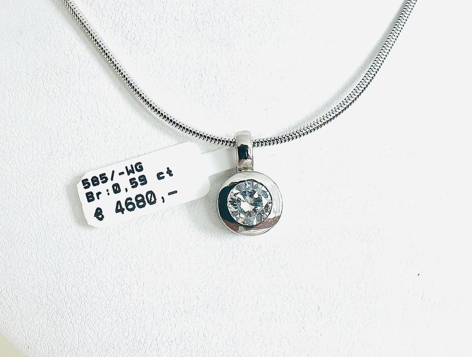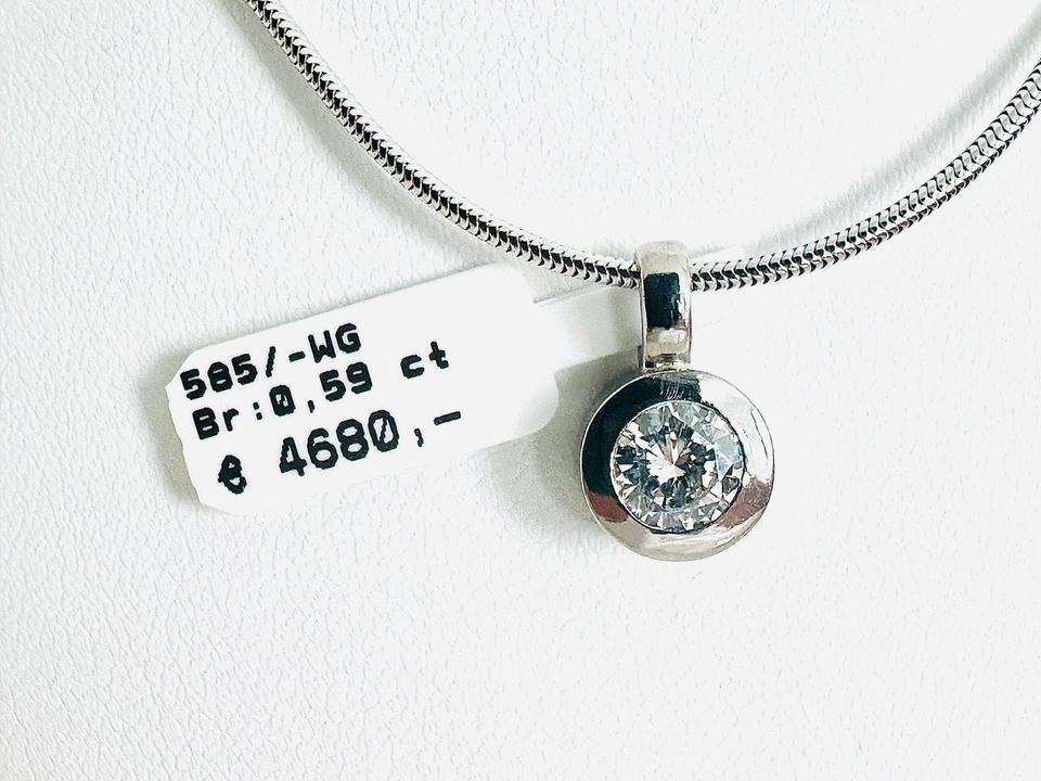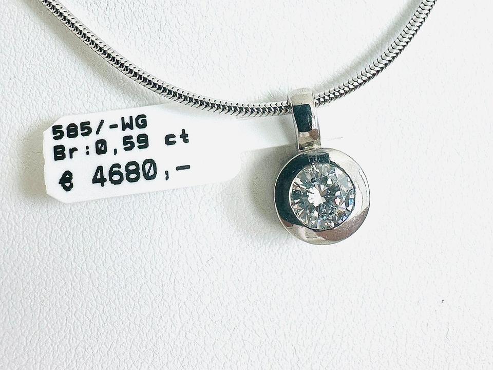 Anhänger 585/- Weißgold mit Brilliant 0,59 ct Tw/vvsi mit Expertise Handarbeit Durchmesser Juwelierpreis 4680,- Angebot 2990,- Preis ohne Kette Eine Kette kann ggf dazu geliefert werden Das ist ein Festpreis, Versand gegen Vorkasse möglich