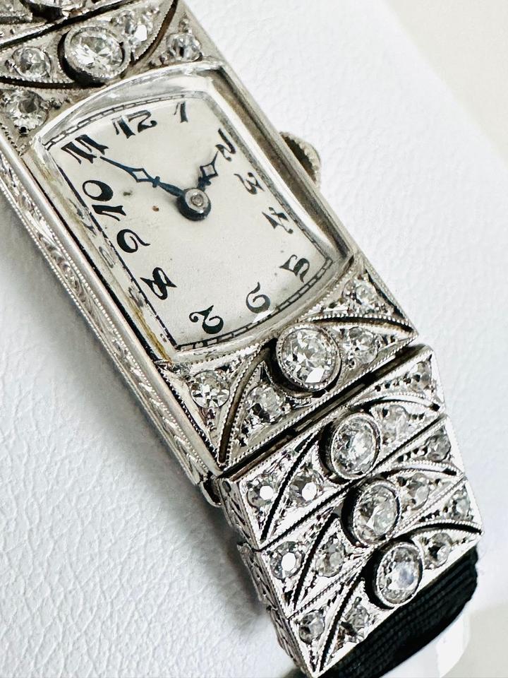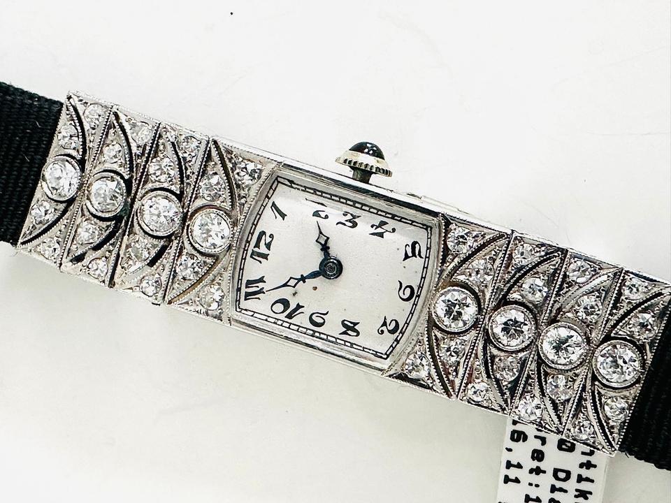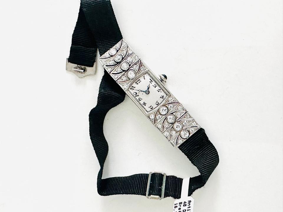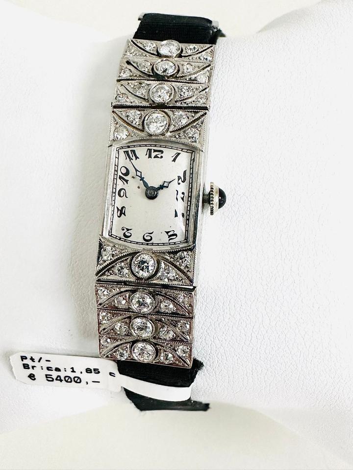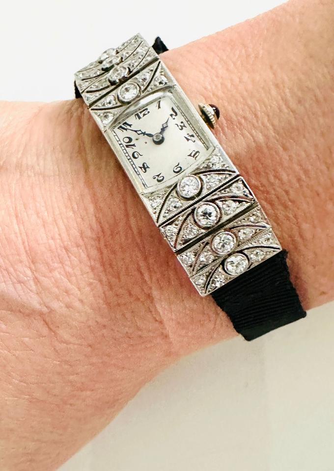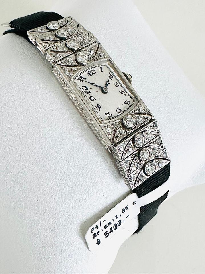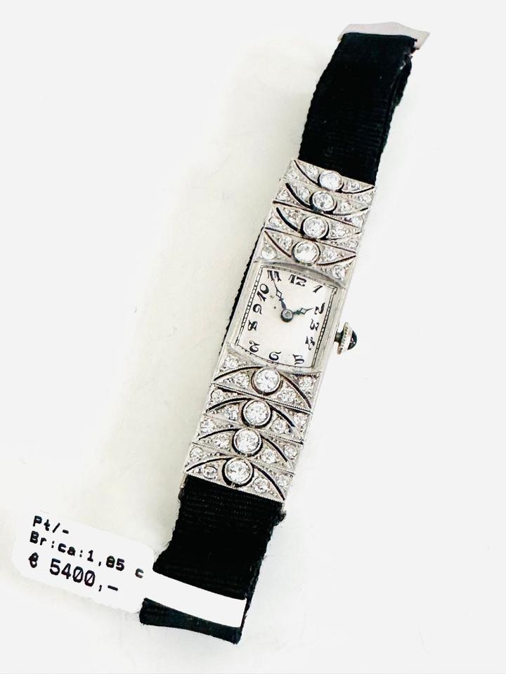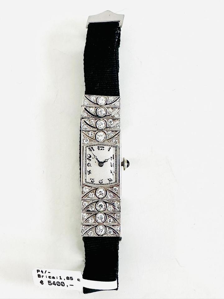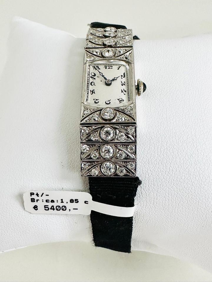 Antike Platinuhr mit Originalband und 40 Brillanten 1,85 ct