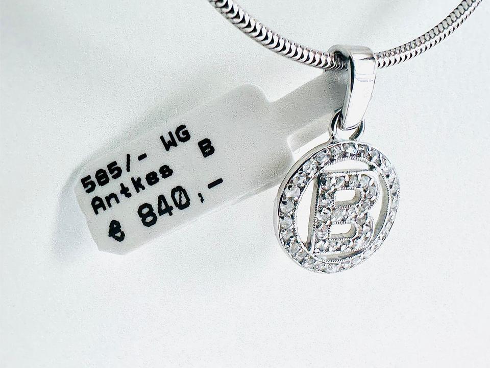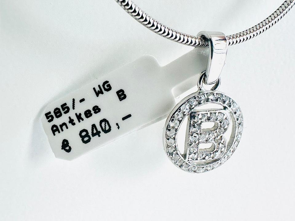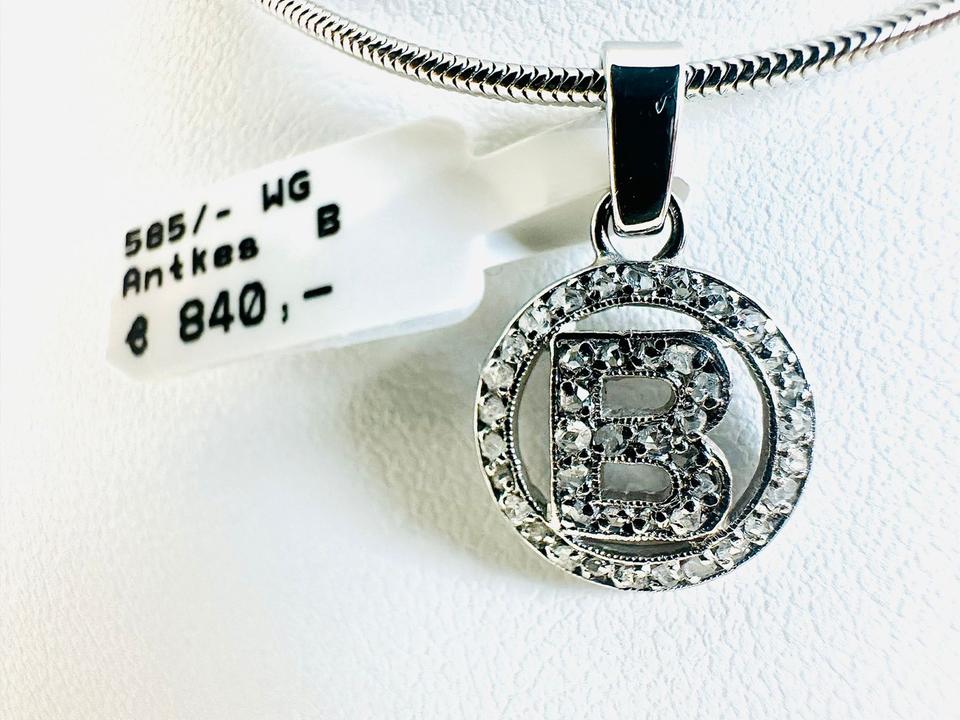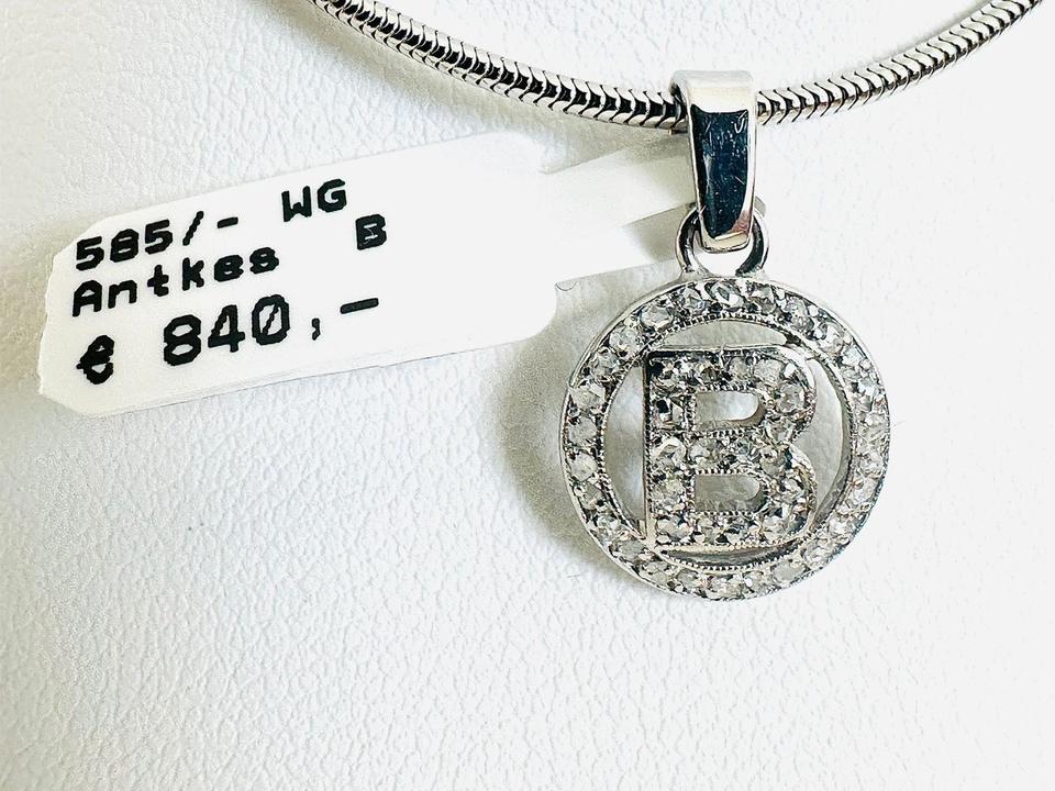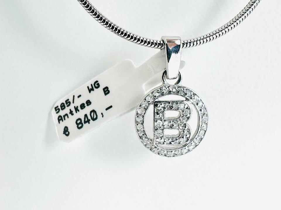Antiker Anhänger 585/- Weißgold mit Diamanten Mit Buchstabe B mit 42 Diamanten Durchmesser 11,3 mm 1,47 Gramm Handarbeit Juwelierpreis 840,- Angebot 490,- Das ist ein Festpreis , Versand gegen Vorkasse möglich