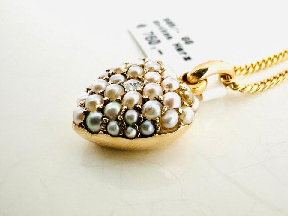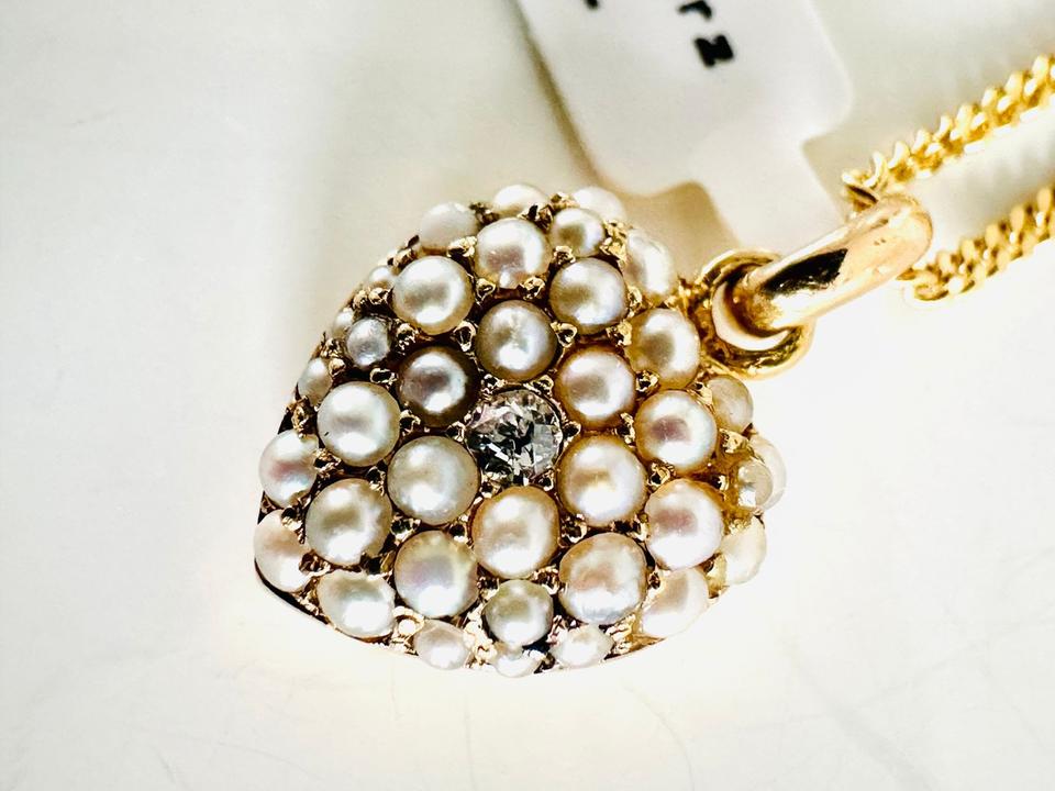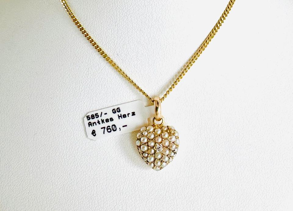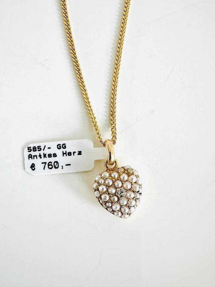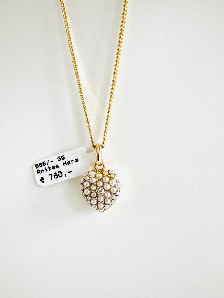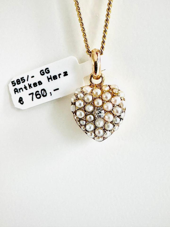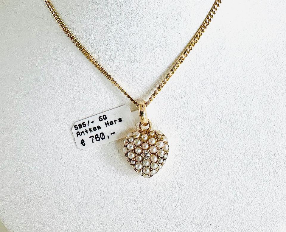 Antiker Anhänger Herz 585/- Gold mit Perlen und Brilliant