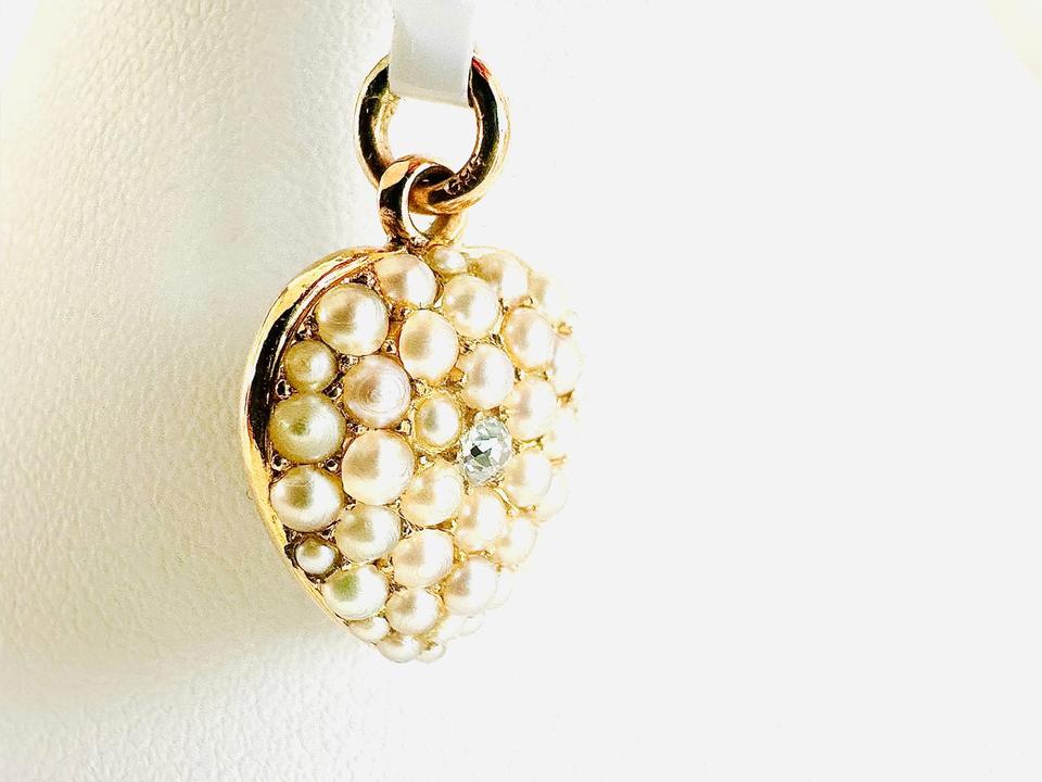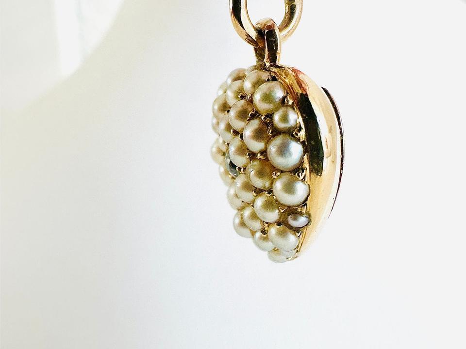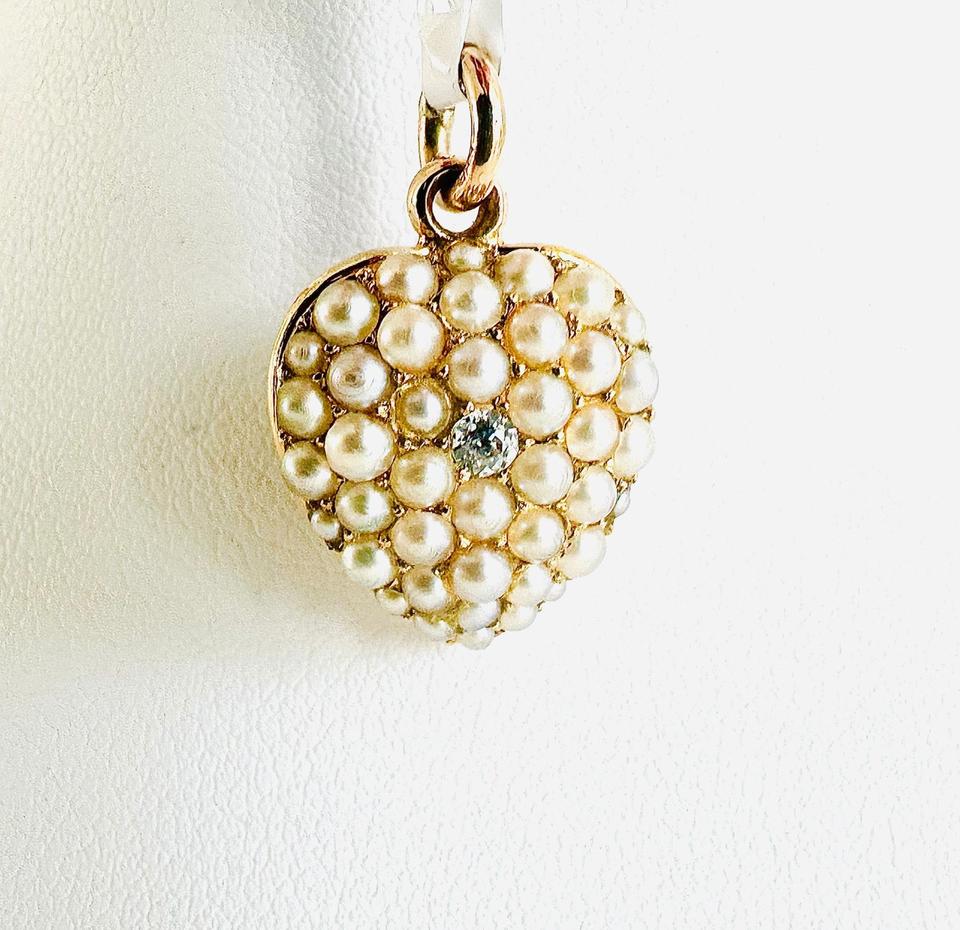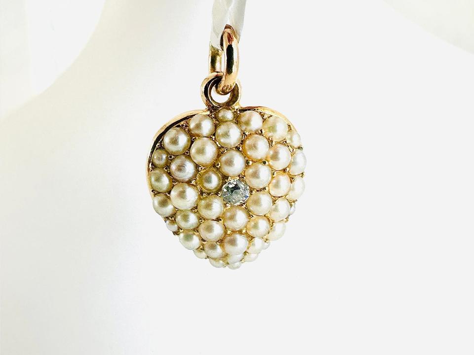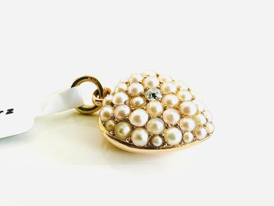 Antiker Anhänger Herzform mit Zuchtperlen und Brilliant 0,02ct