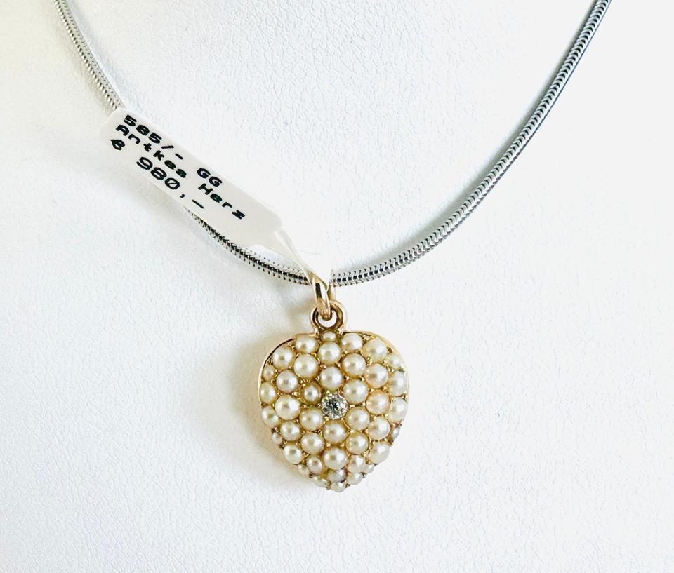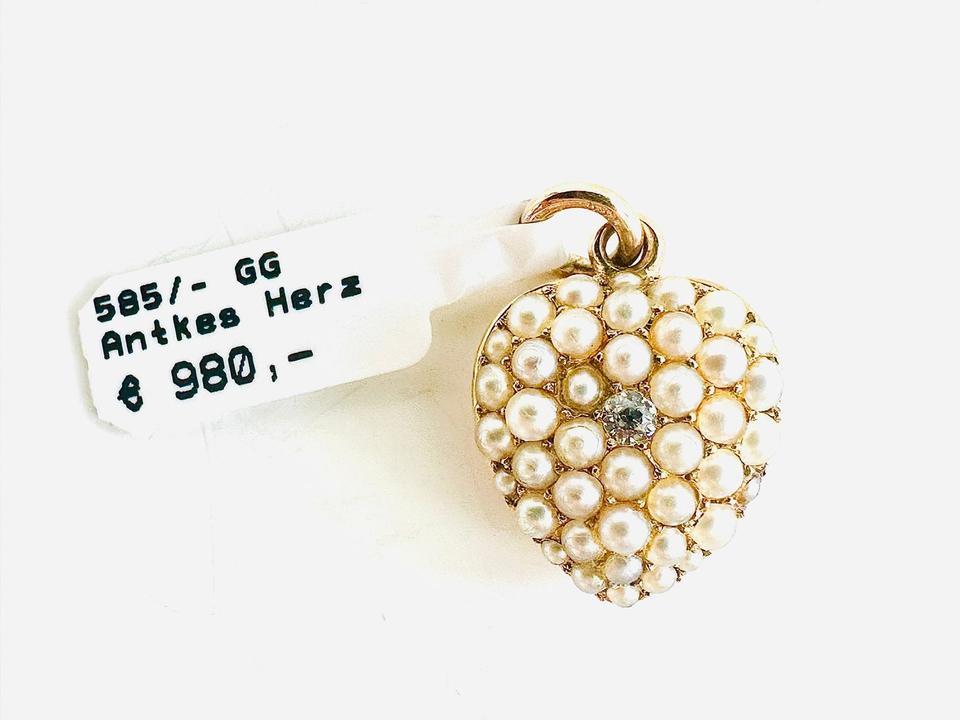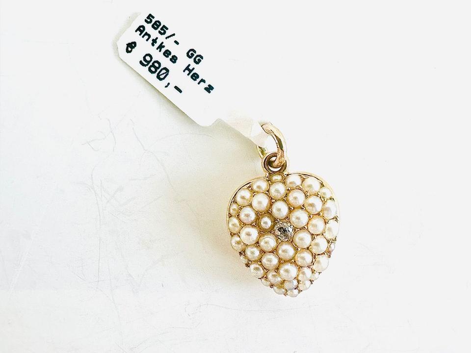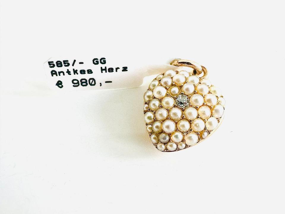 Antiker Anhänger Herzform mit Zuchtperlen und Brilliant 0,02ct 3,25 Gramm Handarbeit 14×18 mm Auch als Medaillon zu tragen Juwelierpreis 980,- Angebot 580,- Das ist ein Festpreis, Versand gegen Vorkasse möglich