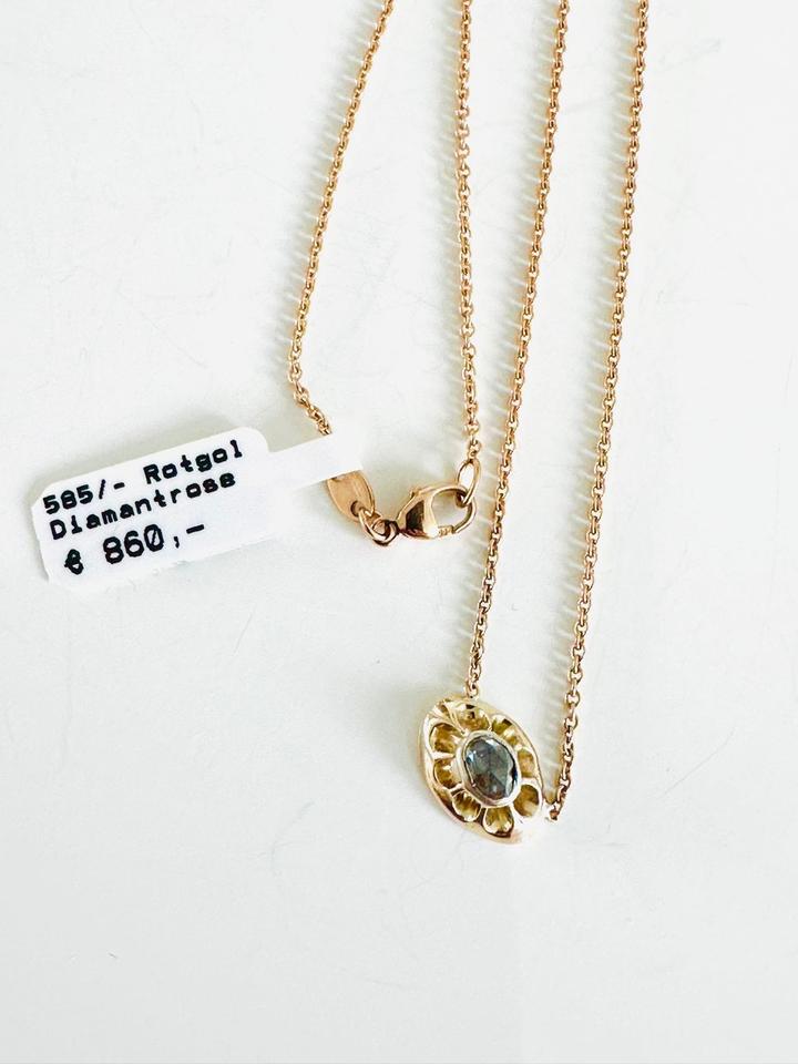 Antiker Diamant Anhänger 585/- Rotgold Kettenlänge 40 cm Mit Diamantrose Gewicht 2,42 gr Kette neu. Juwelierpreis 860,- Angebot 520,- Das ist ein Festpreis, Versand gegen Vorkasse möglich.