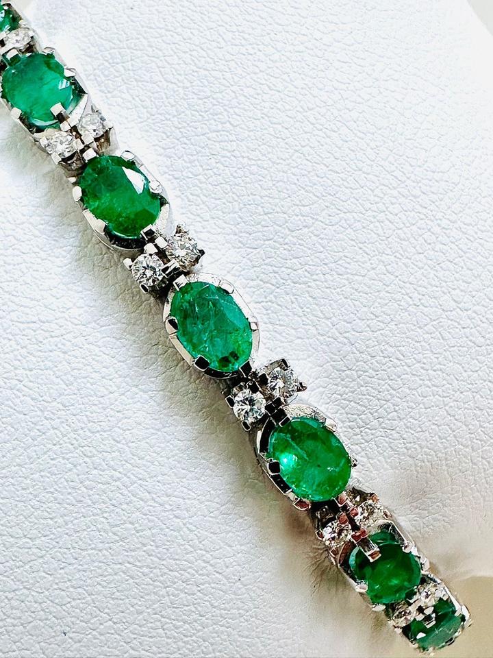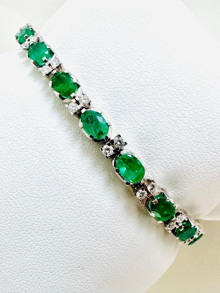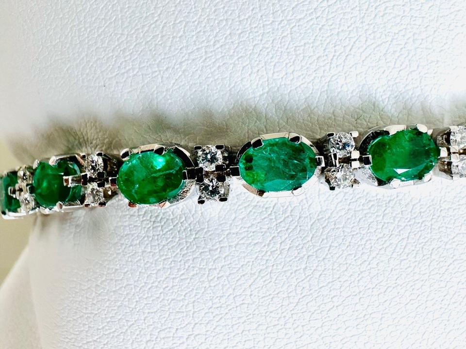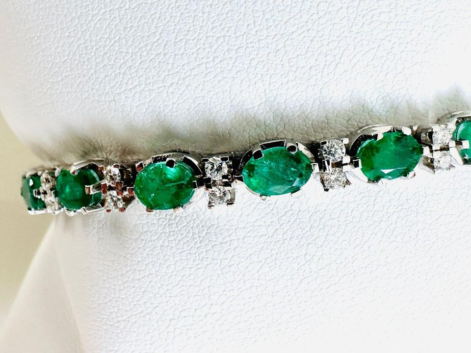 Armband 750/- Weißgold mit Brillianten 1,14 ct Tw/si und Smaragden ca. 8,6 ct Länge 18,5 cm Breite 5,25 mm Juwelierpreis 9460,- Angebot 5600,- Das ist ein Festpreis, Versand gegen Vorkasse möglich.