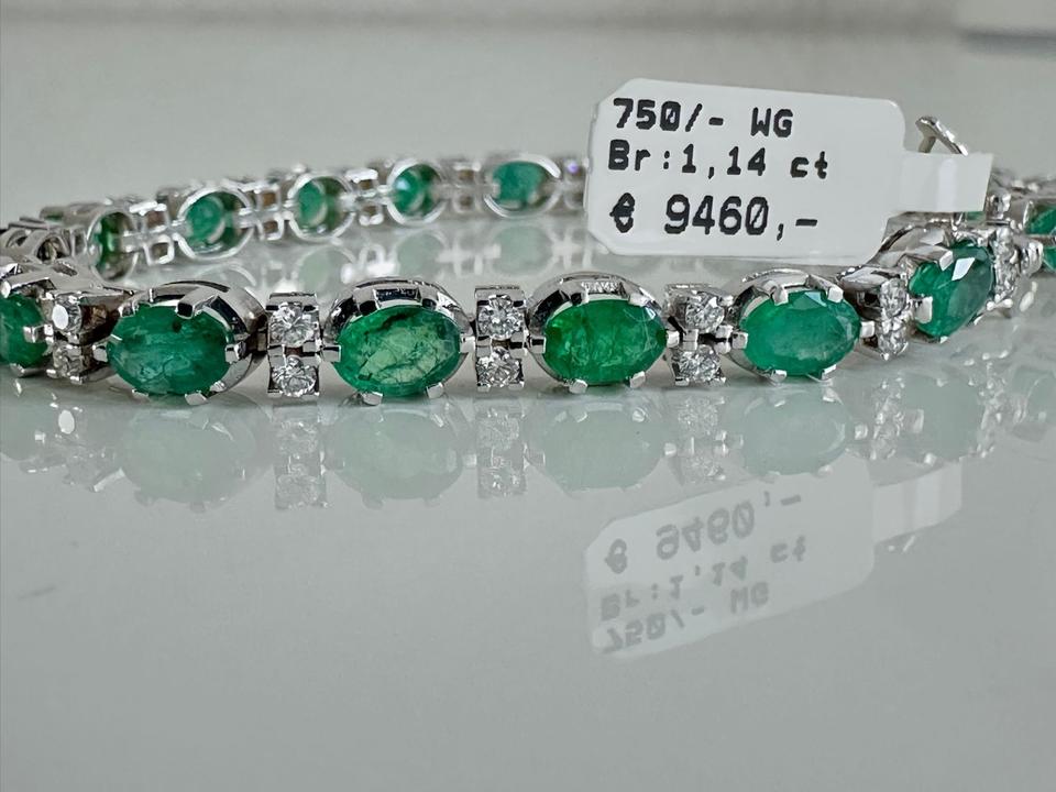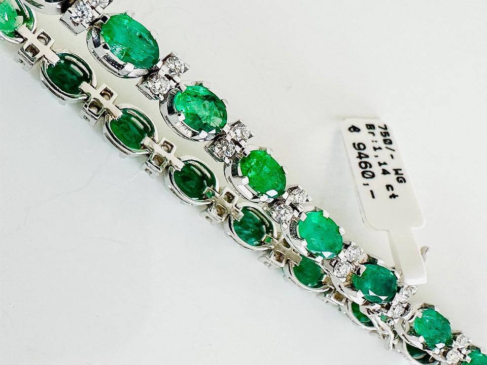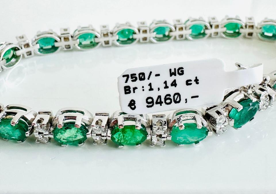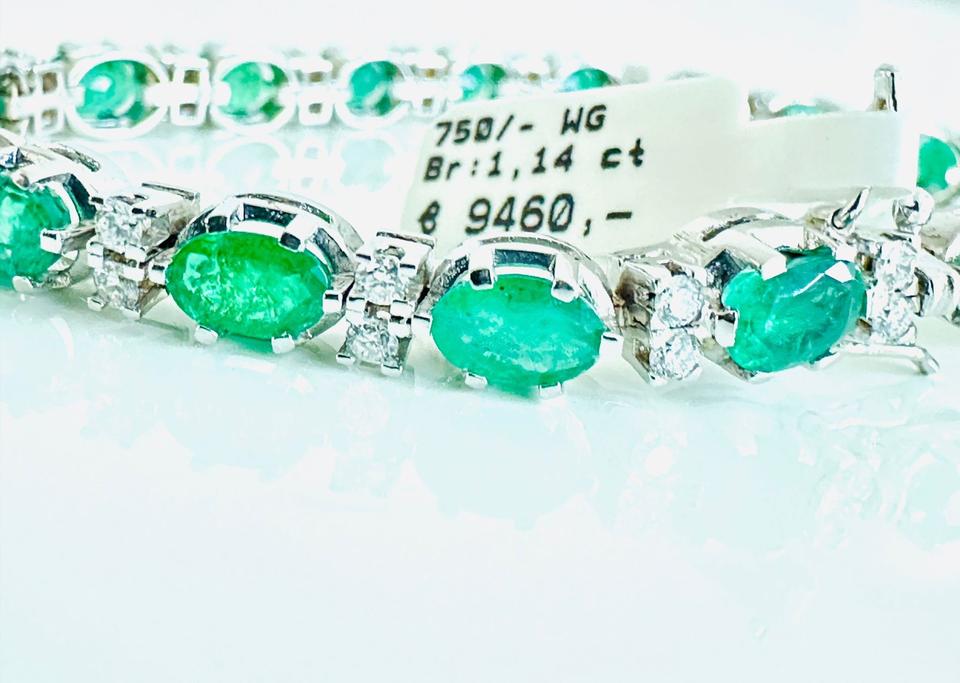 Armband 750/- Weißgold mit Brillianten 1,14 ct Tw/si und Smaragden ca. 8,6 ct