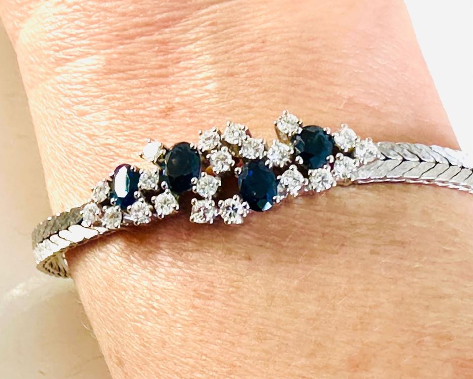 Armband 750/- Weißgold mit 4 Saphiren 2,14 ct und 20 Brillanten 1,11 ct w/Lupenrein Armband Länge 18,7 cm Gewicht 22,77 g Juwelierpreis 6960,- Angebot 3860,-