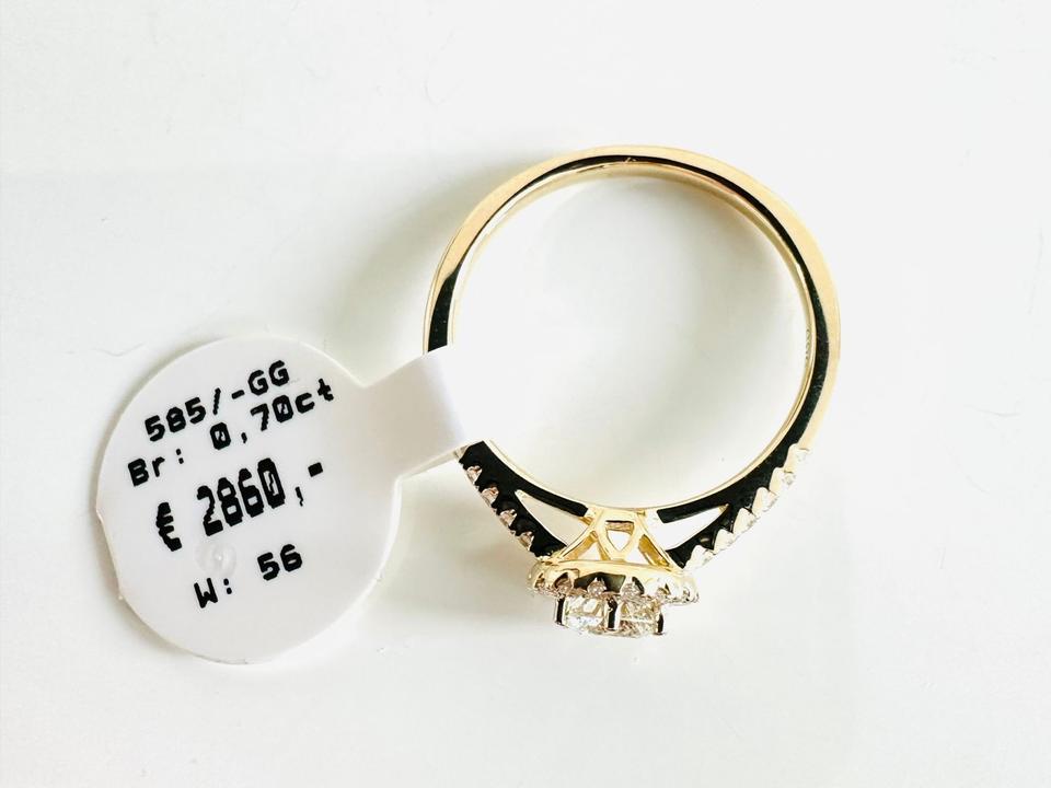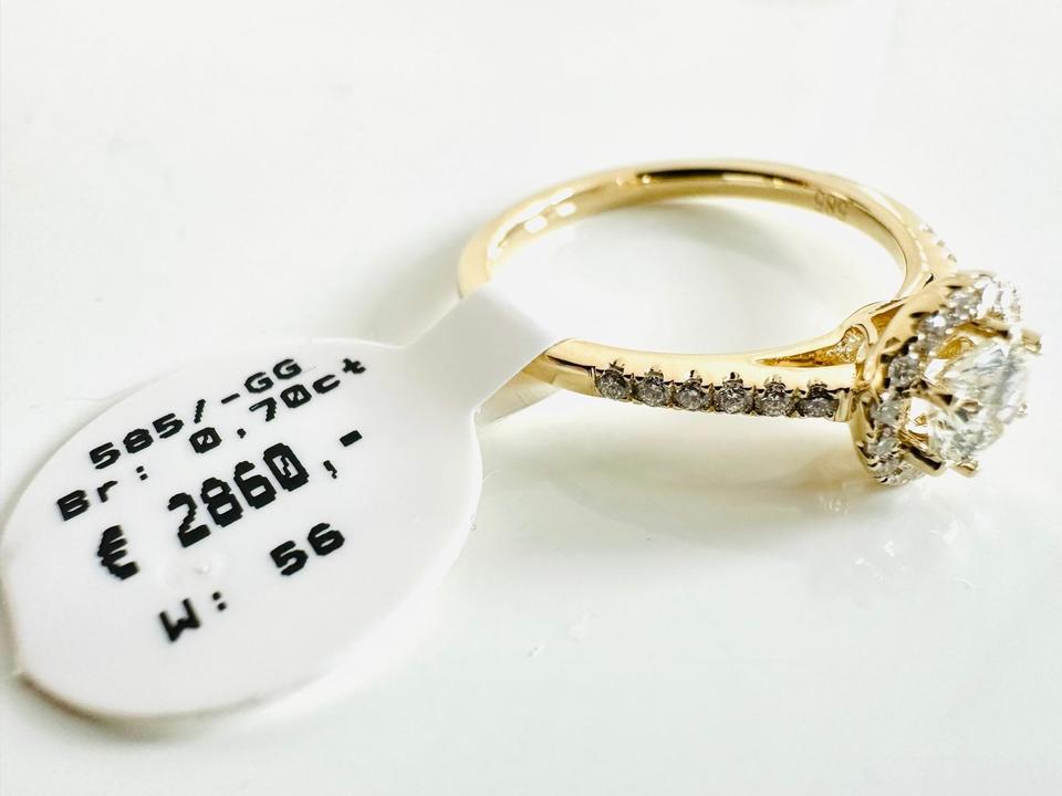 Brilliantring 585/- 0,70 ct Mittelstein 0,46 ct Getöntes Weiß mit Expertise Ringweite 56 Ringweite kann ggf geändert werden Durchmesser 8 mm Juwelierpreis 2860,- Angebot 1740,- Das ist ein Festpreis, Versand gegen Vorkasse möglich