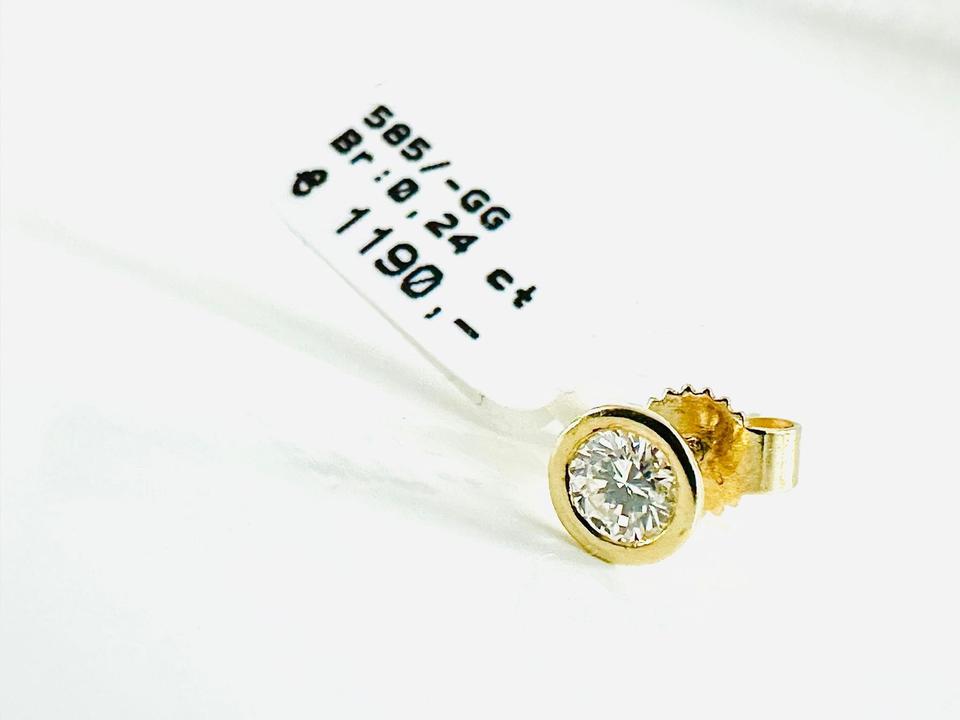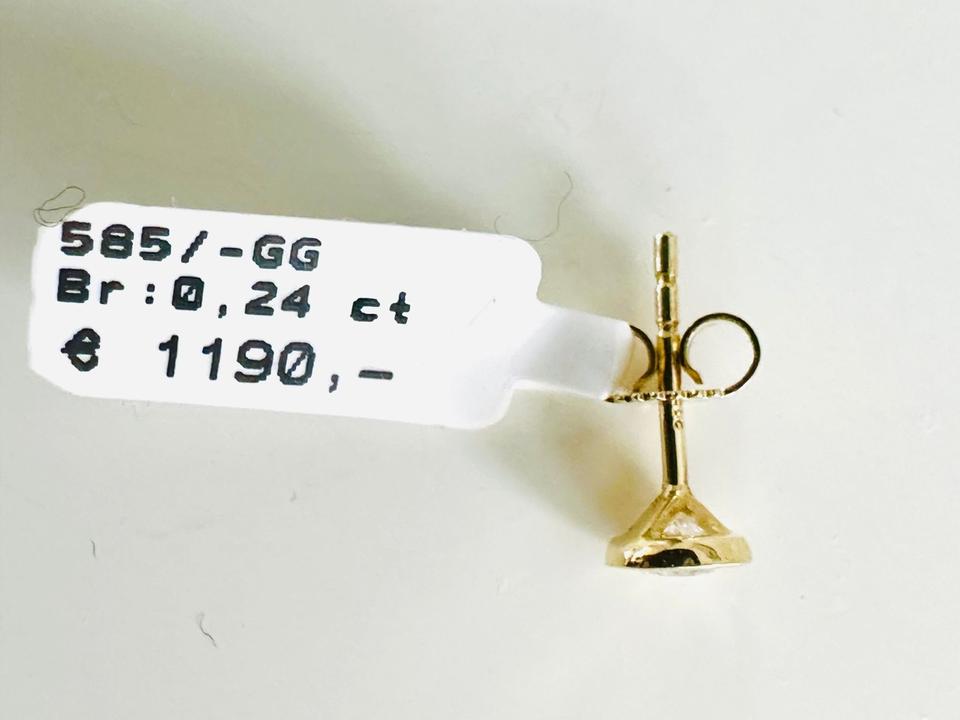 Einzelner Ohrring 585/- Gold mit Brillant 0,24 ct w/Lupenrein Juwelierpreis 1190,- Angebot 740,- Durchmesser: 5,4 mm Das ist ein Festpreis, Versand gegen Vorkasse möglich.
