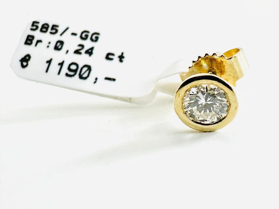 Einzelner Ohrring 585/- Gold mit Brillant 0,24 ct w/Lupenrein