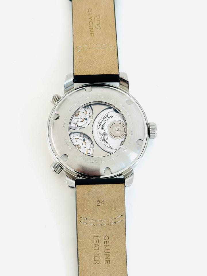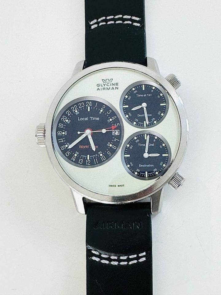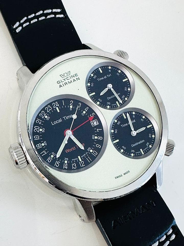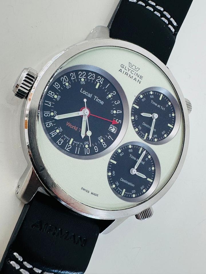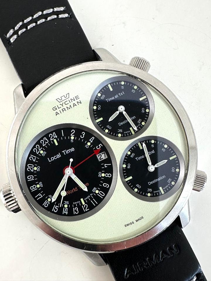 Glycine Airman 4 Zeitzonen GMT mit Original Box Ref 3841 Durchmesser 53 mm 3 Automatic Eta Uhrwerke Krone links Angebot 1750,- Das ist ein Festpreis, Versand gegen Vorkasse möglich. 1 Jahr Garantie