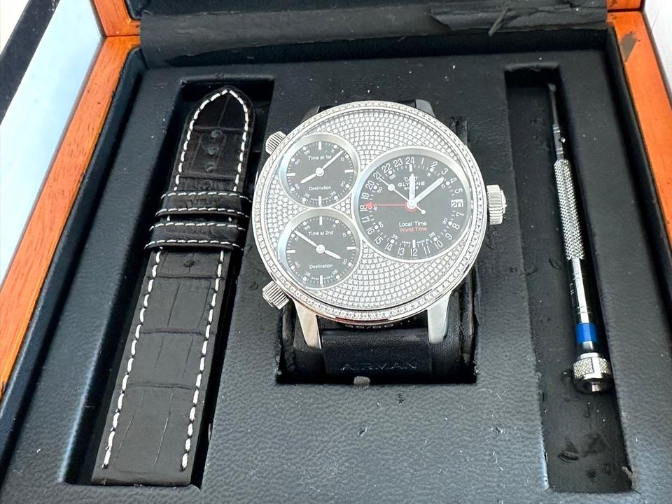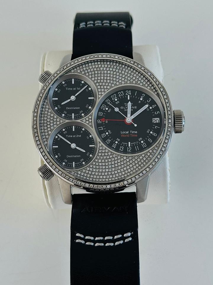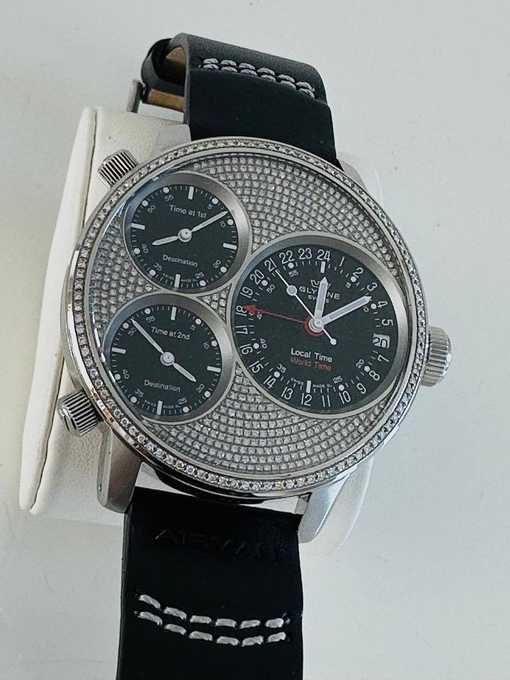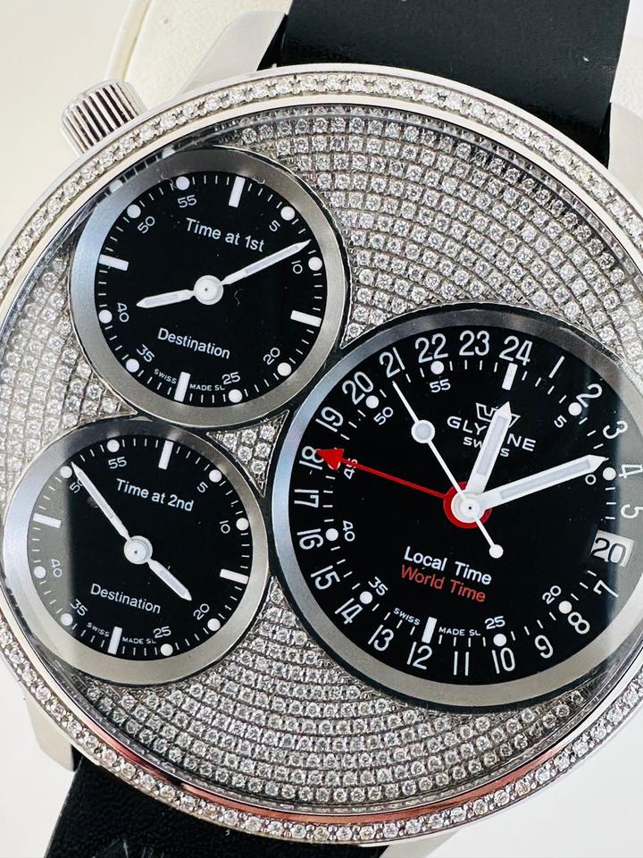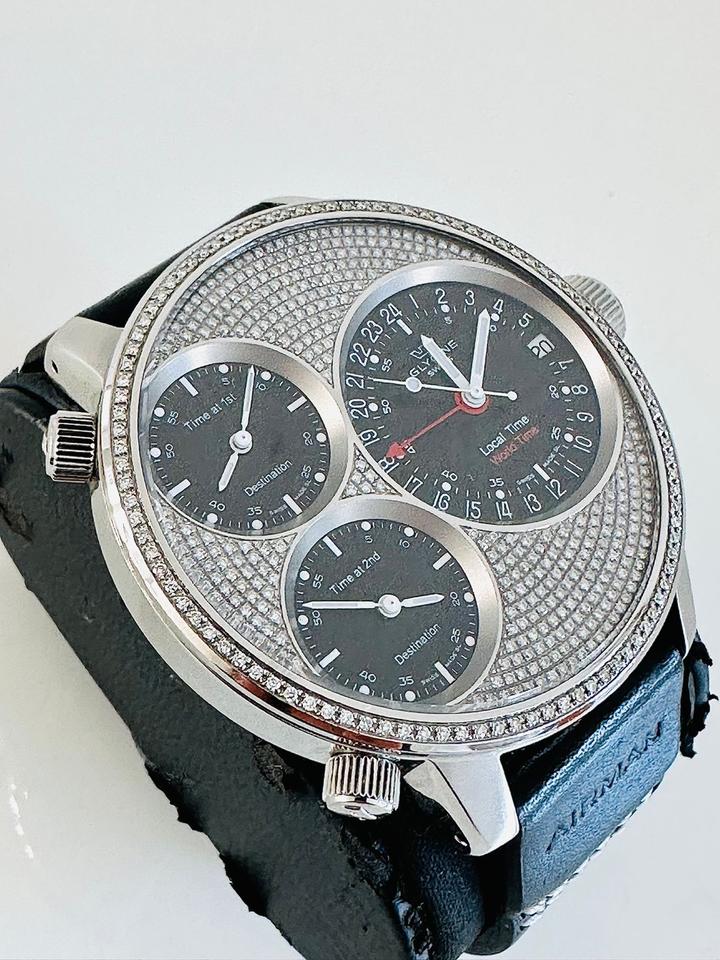 Uhr mit Brillant Zifferblatt und Lynette 1,73 ct Edelstahl Limitierte Auflage 50 Stück Durchmesser 53 mm Mit 3 Automatic Uhrwerken für 4 Zeit Zonen Mit Box und Garantie Festpreis 3460,- Versand gegen Vorkasse möglich.