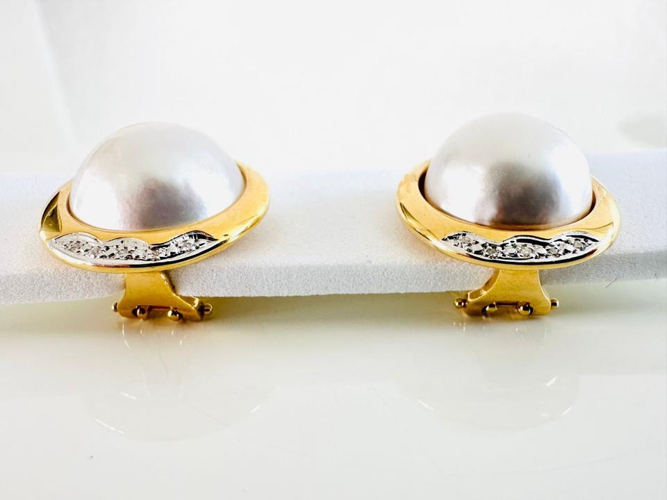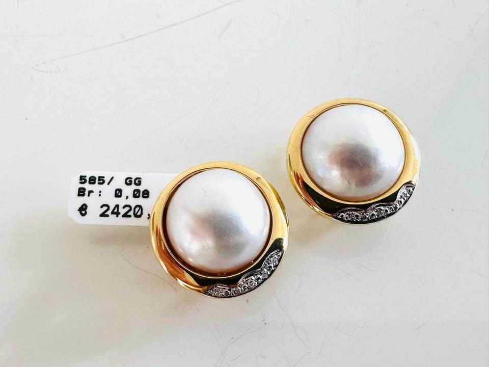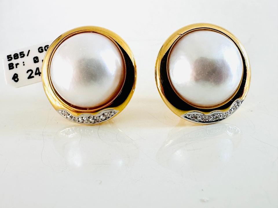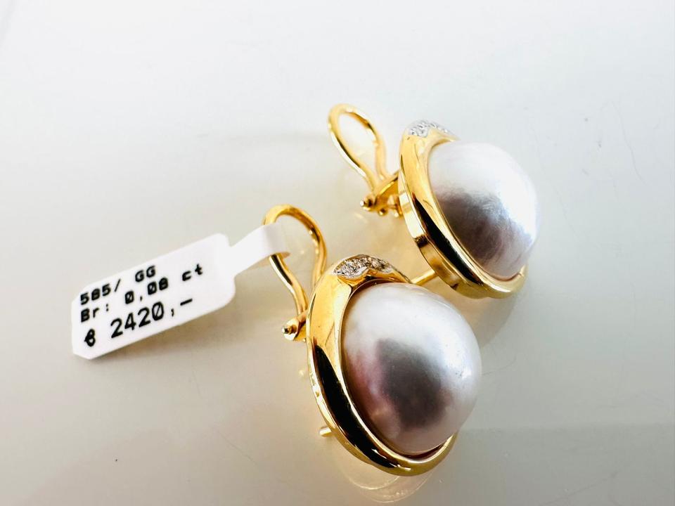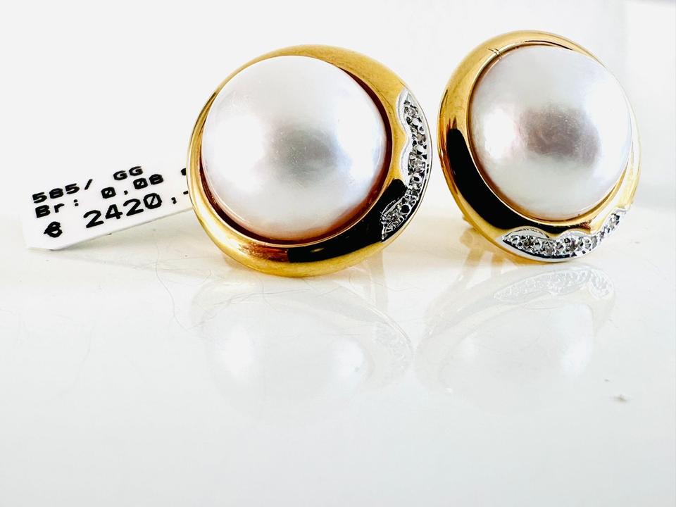 Ohrklipp mit Mabeperle, 585/- Gold Brillanten 0,08 ct Tw/si Durchmesser 17,7 mm Gewicht 9,8 Gramm Juwelierpreis 2420,- Angebot 990,- Das ist ein Festpreis, Versand gegen Vorkasse möglich.