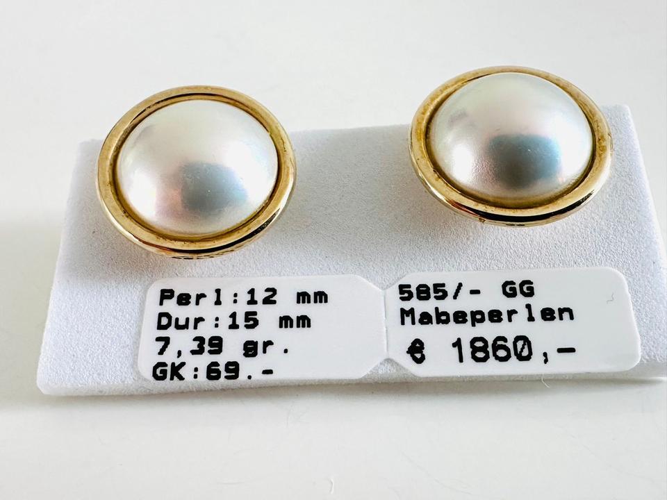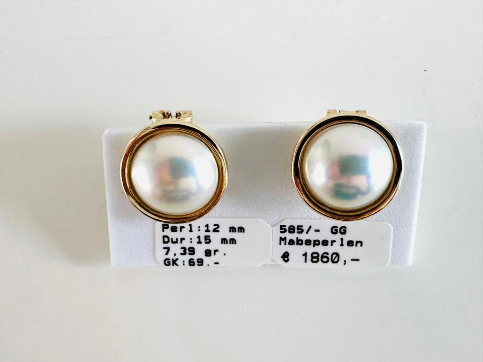 Ohrklipp mit Stift 585/- Gold mit Mabeperle Durchmesser 15 mm Perlendurchmesser 12 mm 7,39 Gramm Juwelierpreis 1850,- Angebot 990,- Das ist ein Festpreis, Versand gegen Vorkasse möglich.
