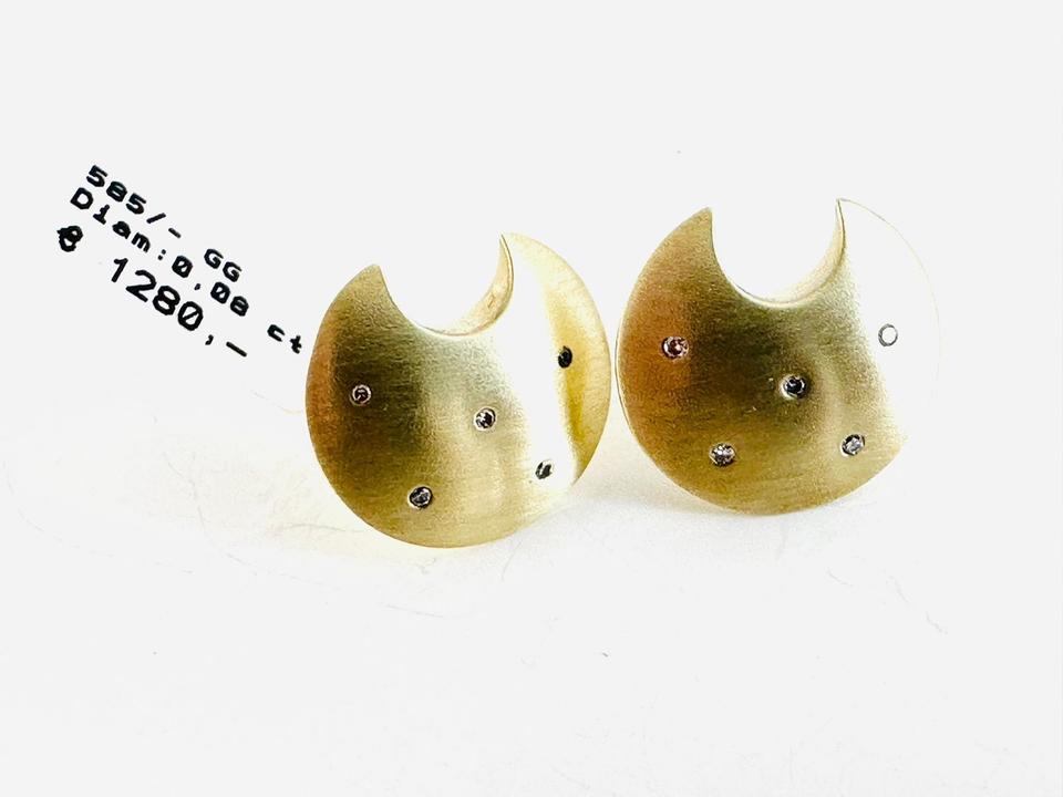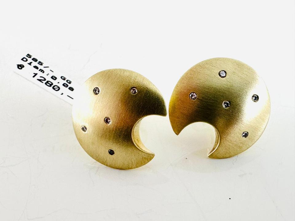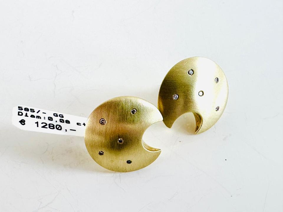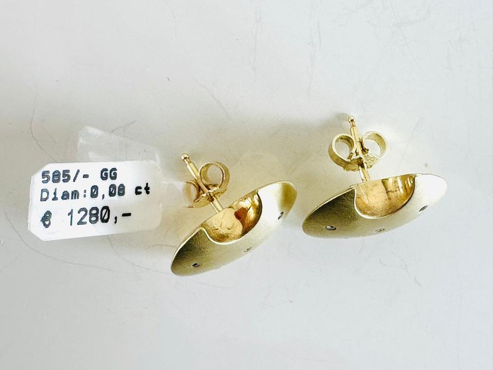 Ohrringe 585/- Gelbgold mit Diamanten 0,08 ct Tw/si Durchmesser 17,2 mm Gewicht 7,48 Juwelierpreis 1280,- Angebot 760,- Das ist ein Festpreis, Versand gegen Vorkasse möglich.