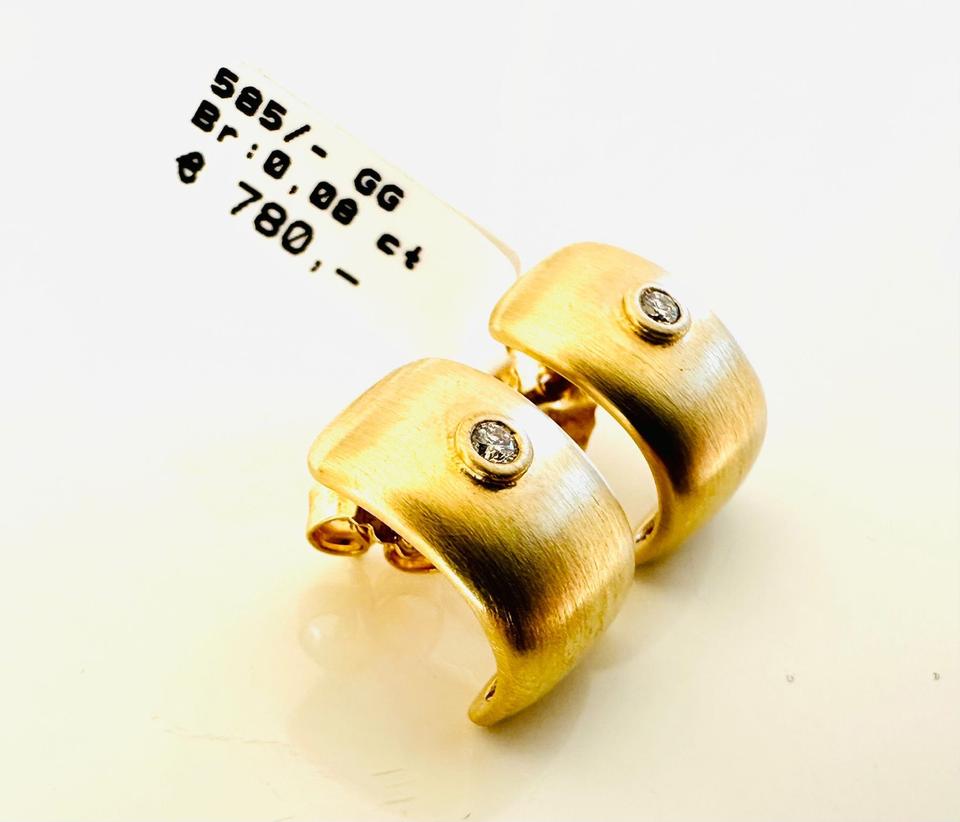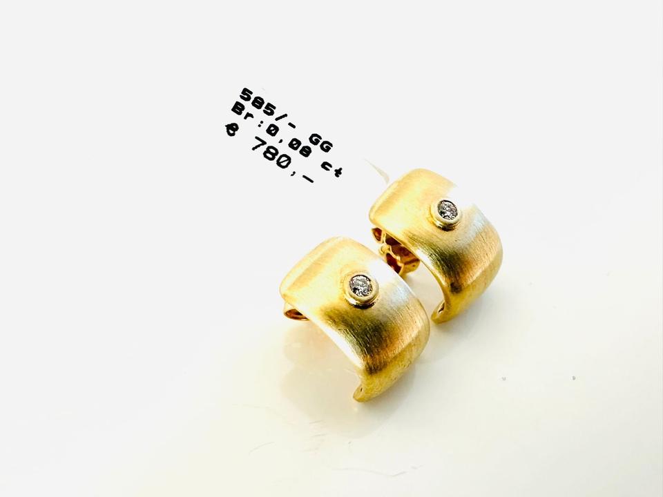 Ohrringe 585/- Gold mit Brillanten 0,08 ct Tw/si Gewicht 3,5 gr Breite 8,7 mm Höhe 13,8 mm Juwelierpreis 780,- Angebot 460,- Das ist ein Festpreis, Versand gegen Vorkasse möglich.