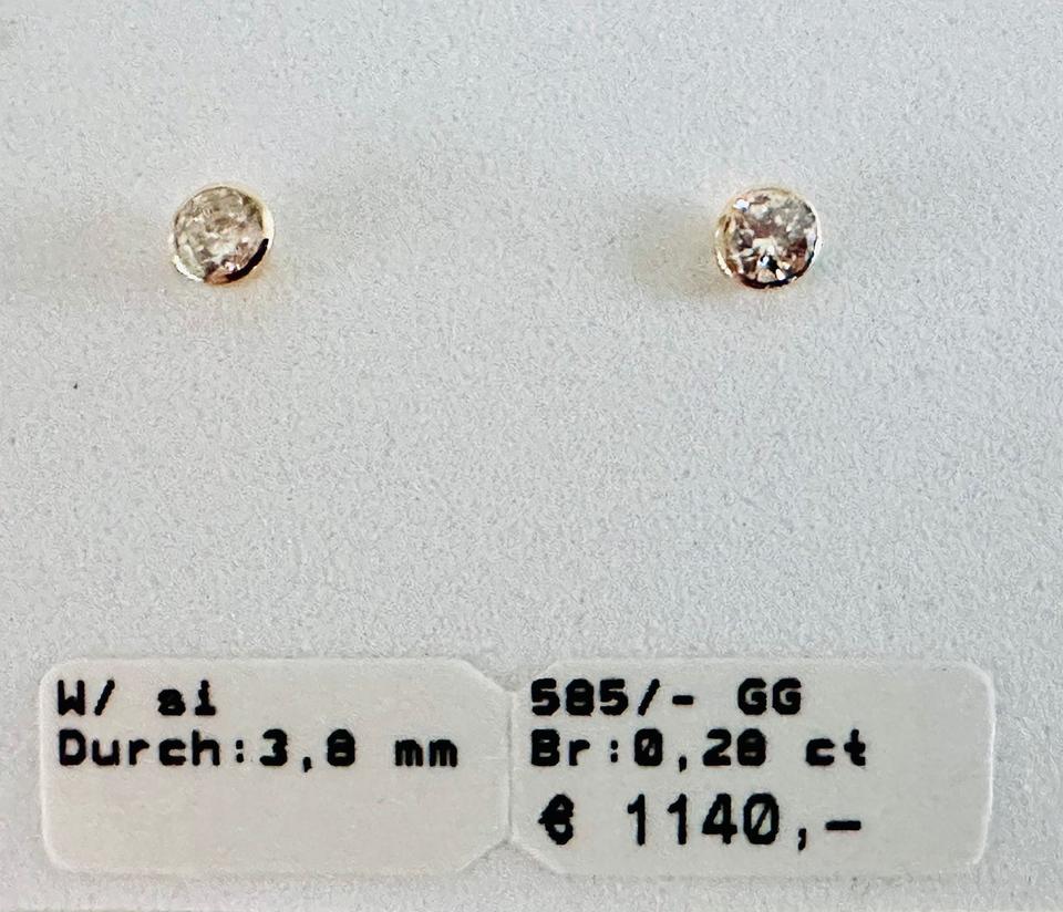 Ohrringe 585/- Gold mit Brillianten 0,28 ct w/si Durchmesser 3,8 mm Juwelierpreis 1140,- Angebot 690,- Das ist ein Festpreis, Versand gegen Vorkasse möglich.