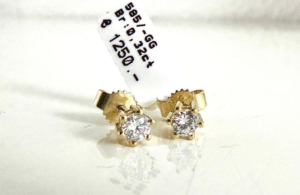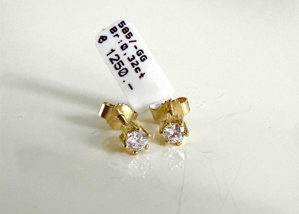 Ohrringe 585/- Gold mit Brillianten 0,32 ct w/lupenrein Durchmesser: 4,8 mm Juwelierpreis 1250,- Angebot 750,- Das ist ein Festpreis, Versand gegen Vorkasse möglich