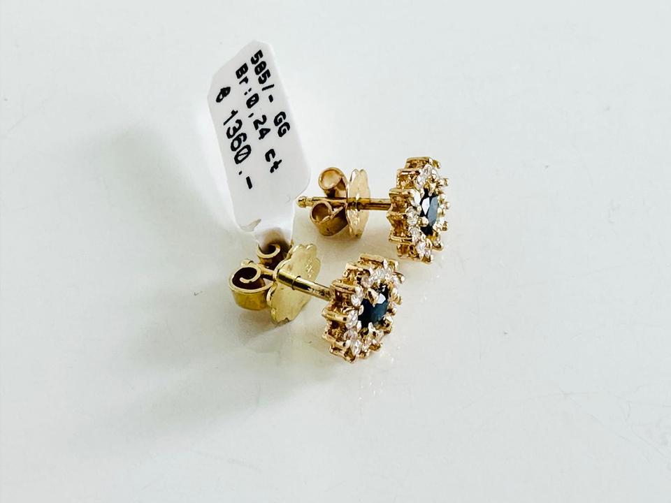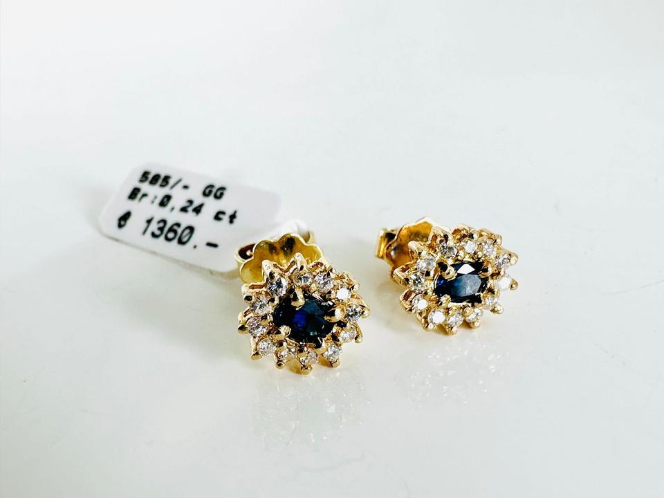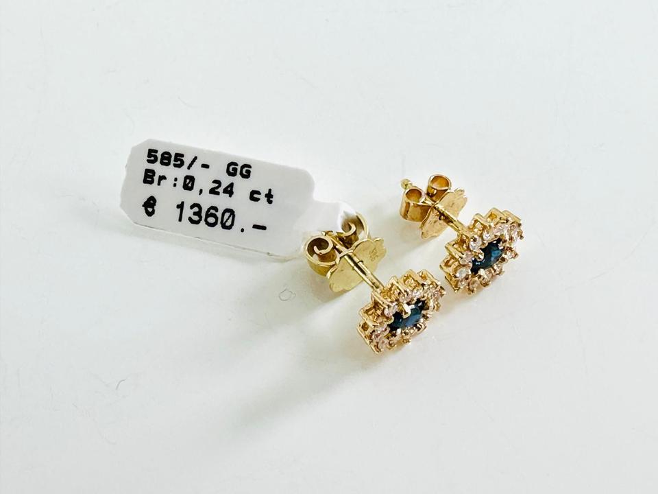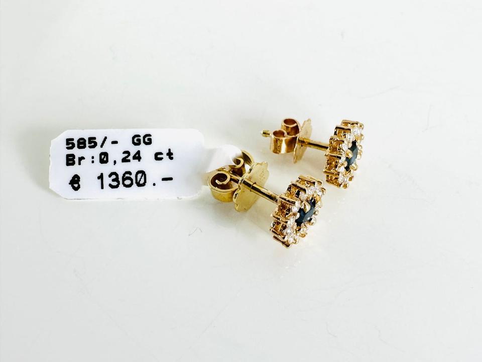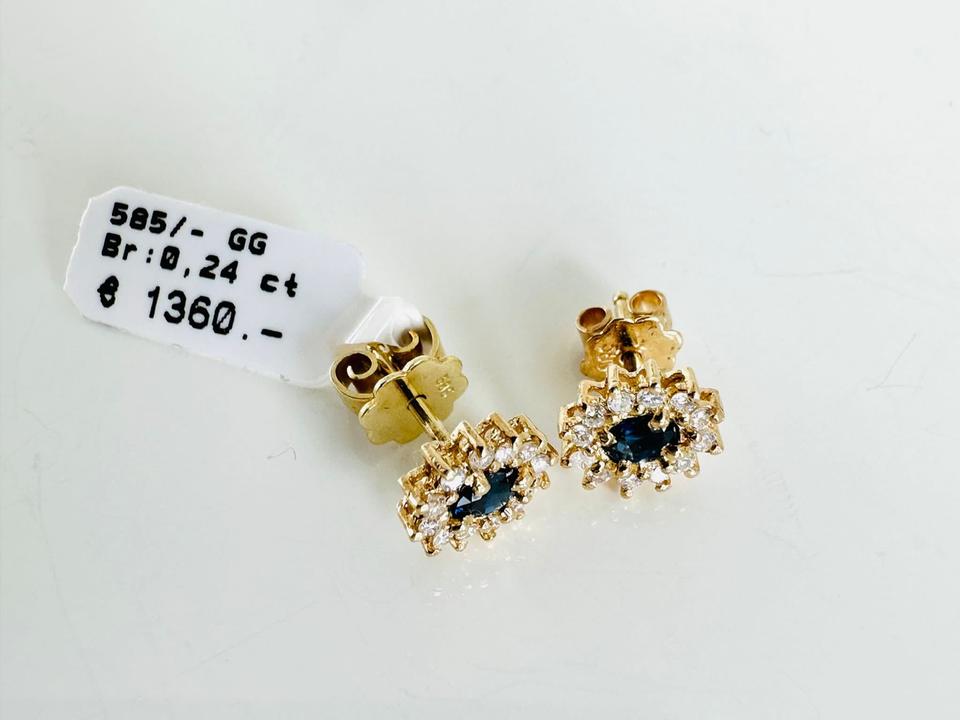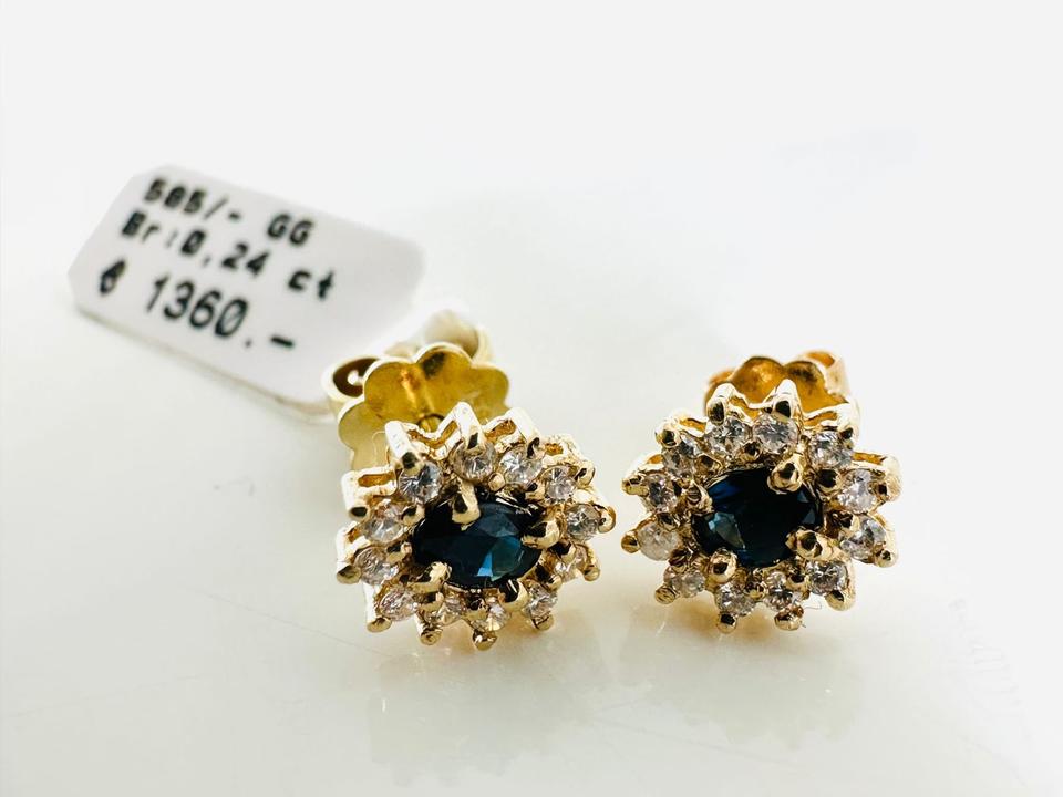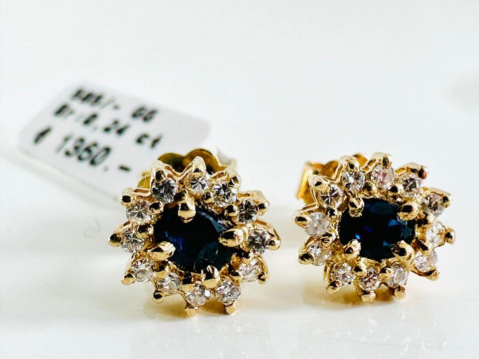 Ohrringe 585/- Gold mit Saphiren und 24 Brillanten 0,24 ct Tw/si 7,5 x8,4 mm Juwelierpreis 1360,- Angebot 790,- Das ist ein Festpreis, Versand gegen Vorkasse möglich.
