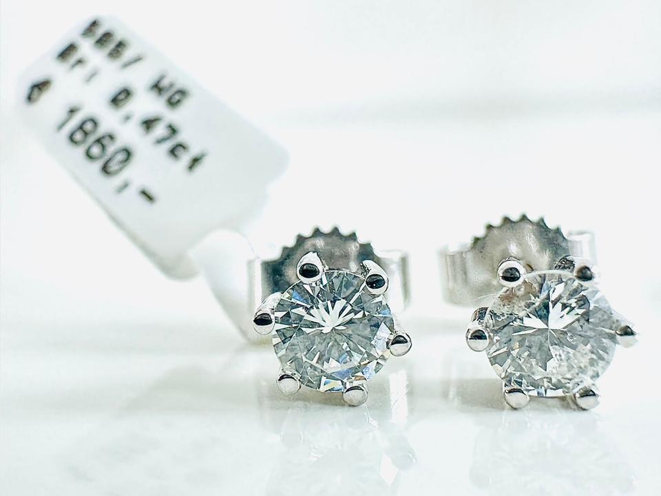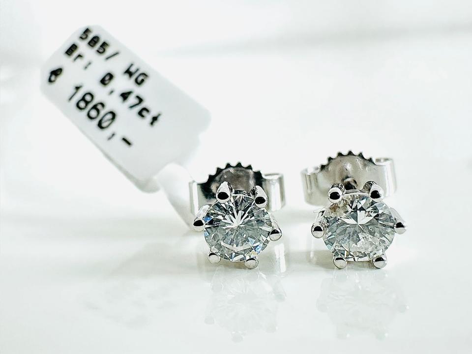 Ohrringe 585/- Weißgold mit Brillanten 0,47 ct Tw si Durchmesser 5,2 mm Juwelierpreis 1860,- Angebot 1100,- Das ist ein Festpreis, Versand gegen Vorkasse möglich.