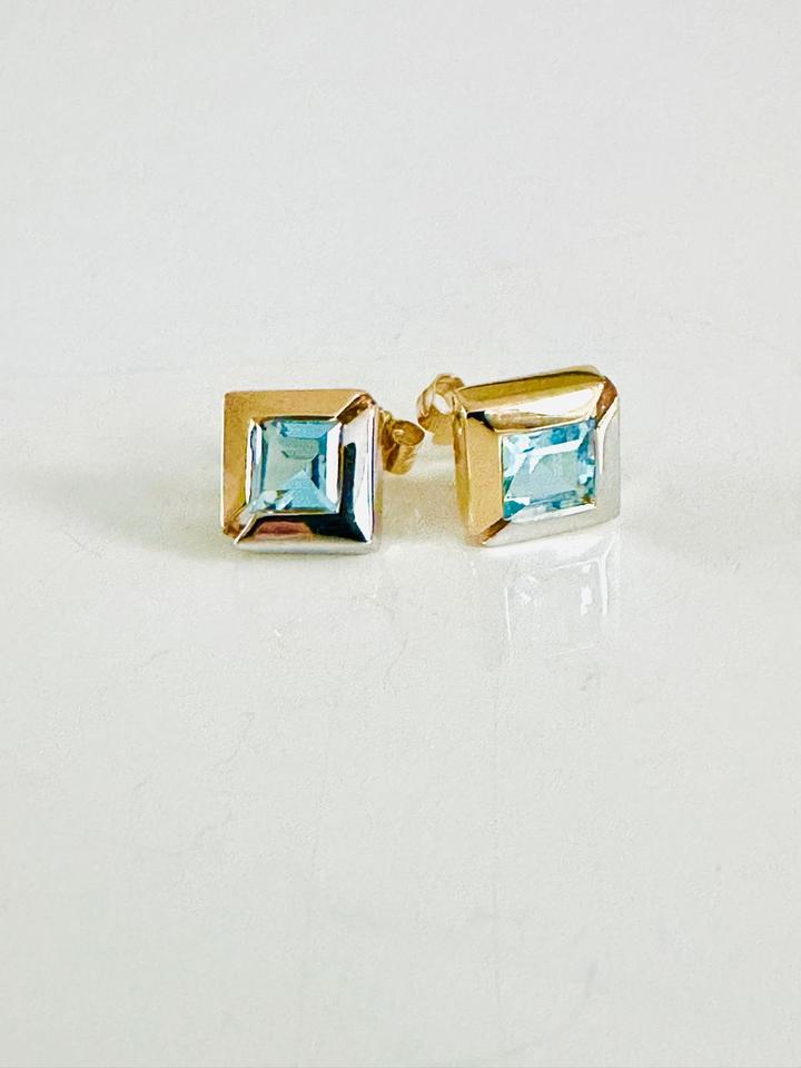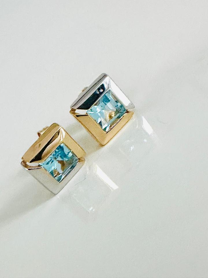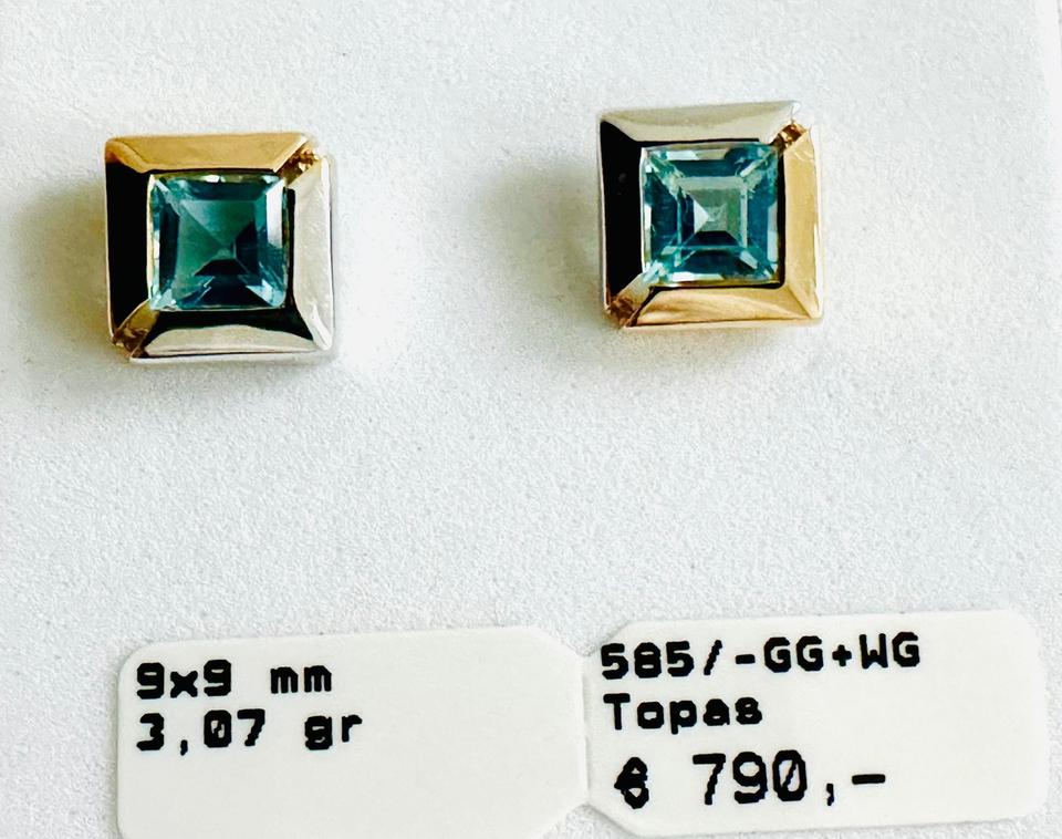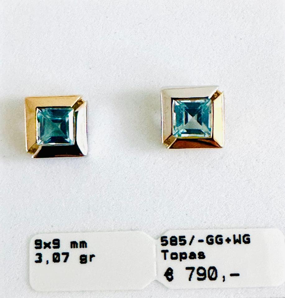 Ohrringe 585/- Weißgold und Gelbgold mit Topas 3,07 Gramm 9×9 mm Juwelierpreis 790,- Angebot 480,- Das ist ein Festpreis, Versand gegen Vorksse möglich.