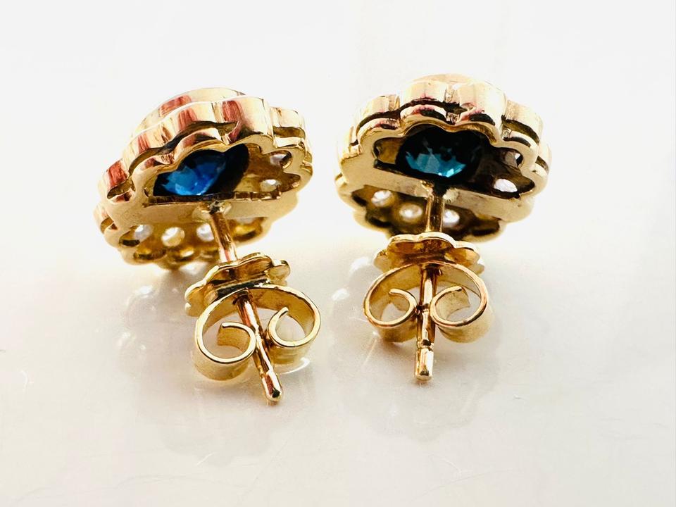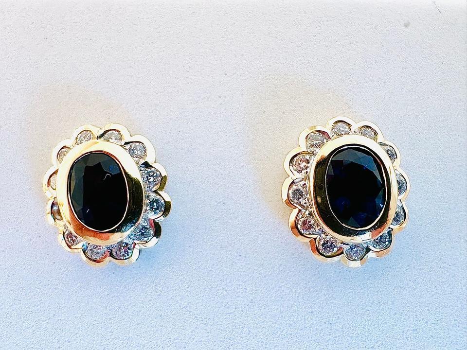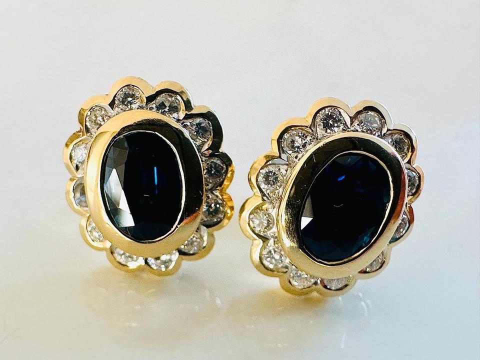 Ohrringe 750/- Gold mit Saphir und Brillanten 0,72 ct Tw/vsi 6,8 Gramm 11,7×13,5,mm Juwelier Verkaufspreis 3640,- Angebot 1980,- Das ist ein Festpreis, Versand gegen Vorkasse möglich.