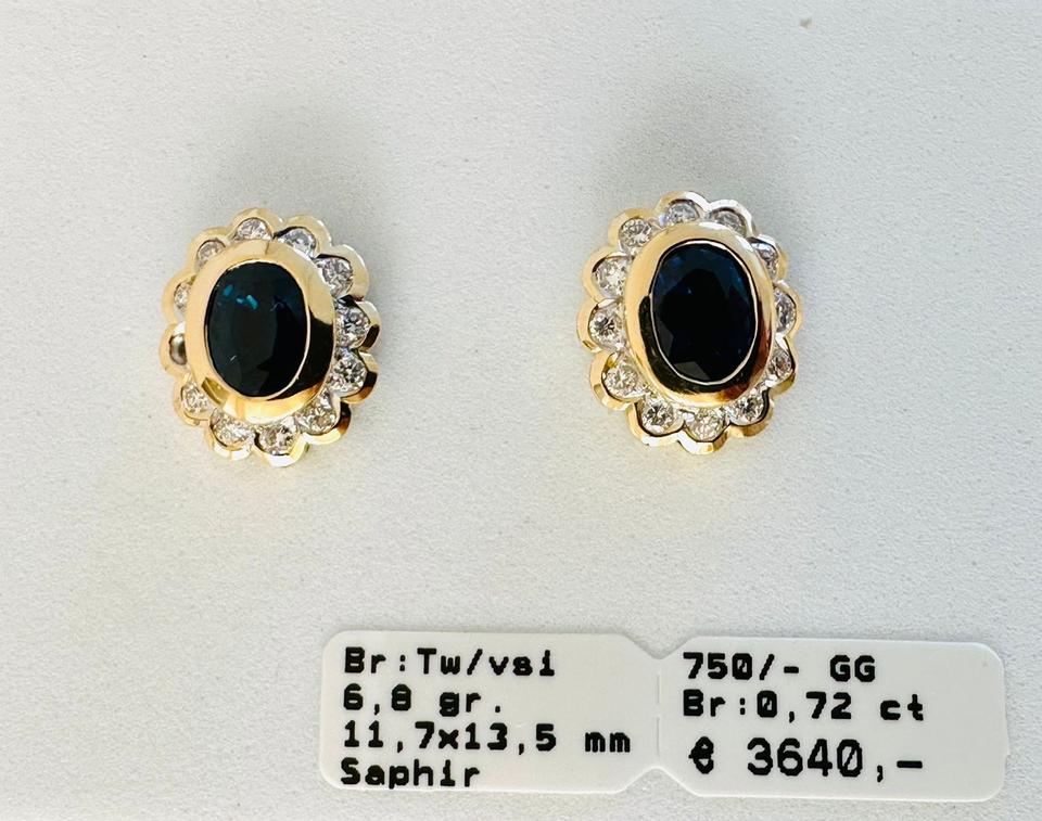 Ohrringe 750/- Gold mit Saphir und Brillanten 0,72 ct Tw/vsi