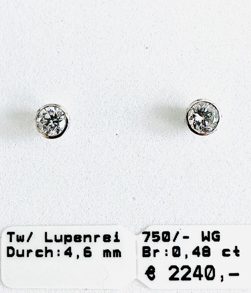 Ohrringe 750/- Weißgold mit Brillianten 0,48 ct Tw/lupenrein Durchmesser 4,6 mm Juwelierpreis 2240,- Angebot 1360,- Das ist ein Festpreis, Versand gegen Vorkasse möglich