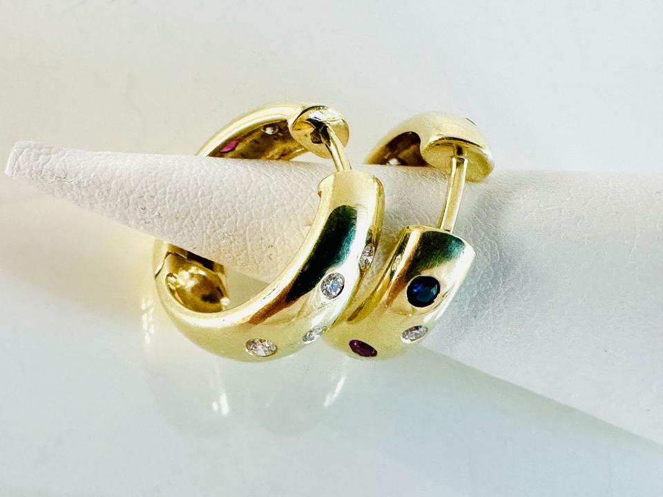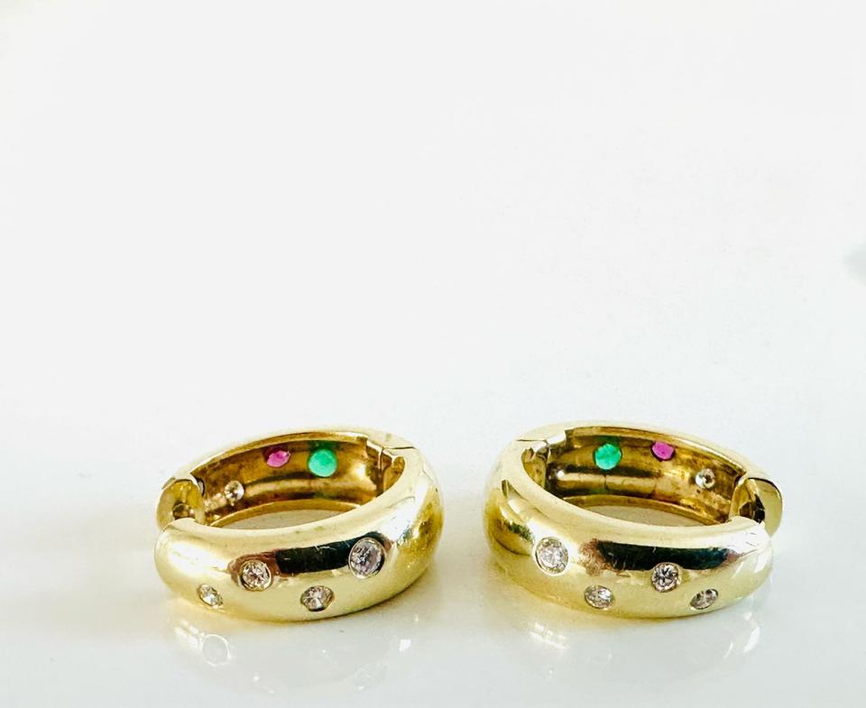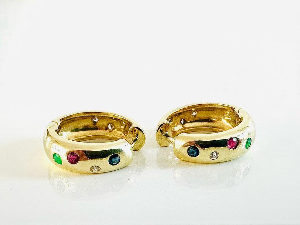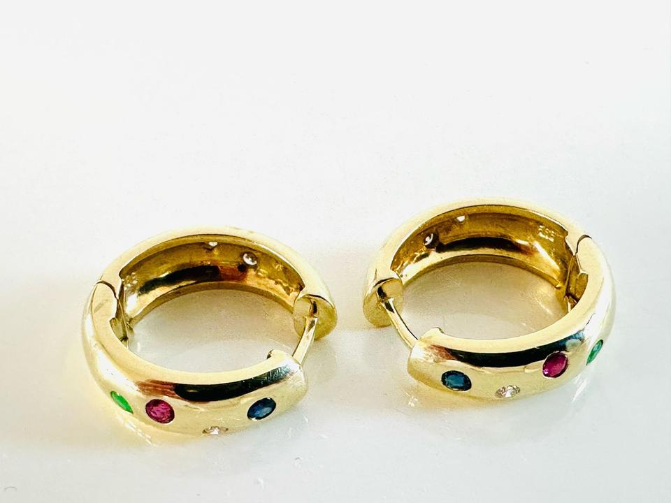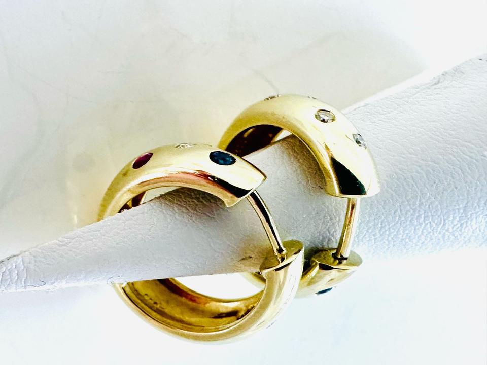 Creolen 585/- Gelbgold mit Farbsteinen und Brillianten 0,18 ct Tw/si