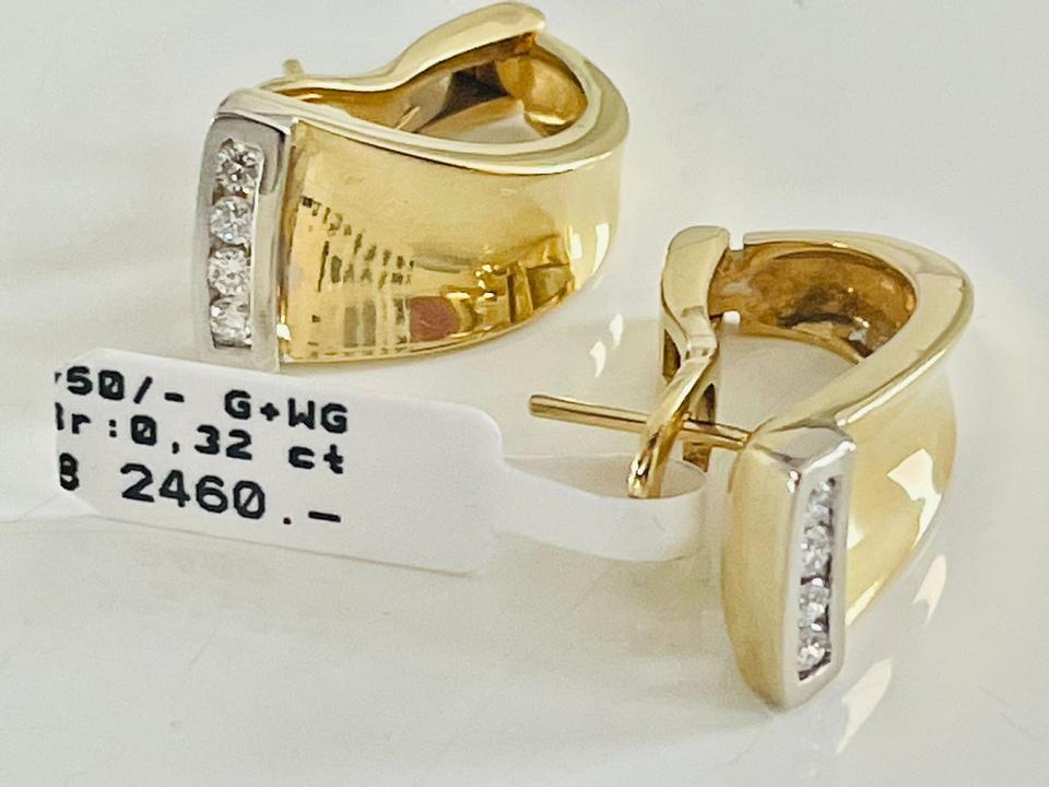 Ohrstecker 750/- mit 8 Brillanten 0,32ct Tw/vvsi Ohrringe mit Stift und Klickmechanik Breite: 11,5 mm Höhe 19,5 mm Juwelier Verkaufspreis 2460,- Mein Angebot 1100,-