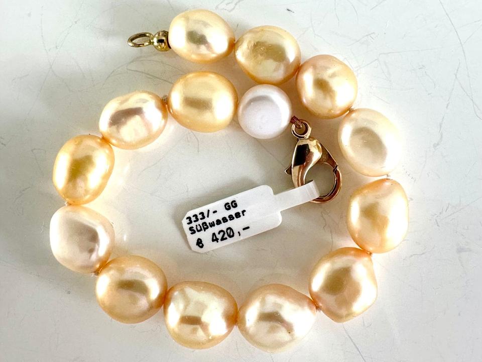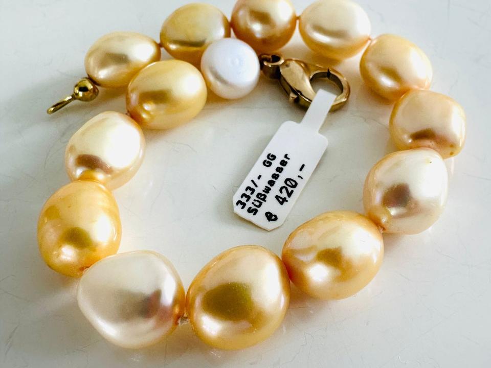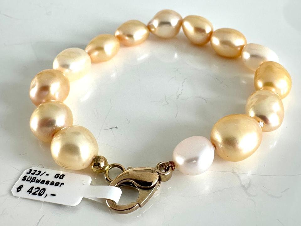Armband mit Süßwasser Perlen und Schliss 333/- Gold Länge 20 cm Perlendurchmesser 9 mm Naturfarbene Perlen Juwelierpreis 420,- Angebot 240,- Das ist ein Festpreis, Versand gegen Vorkasse möglich.