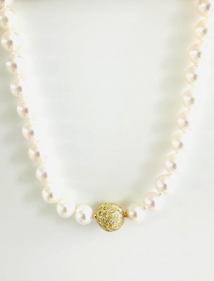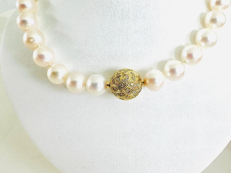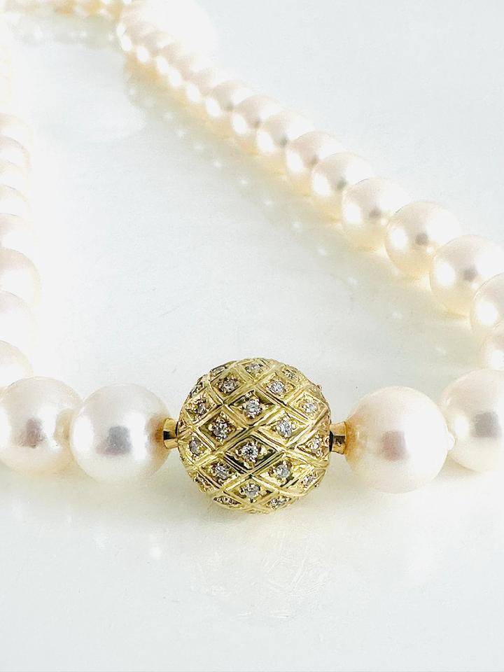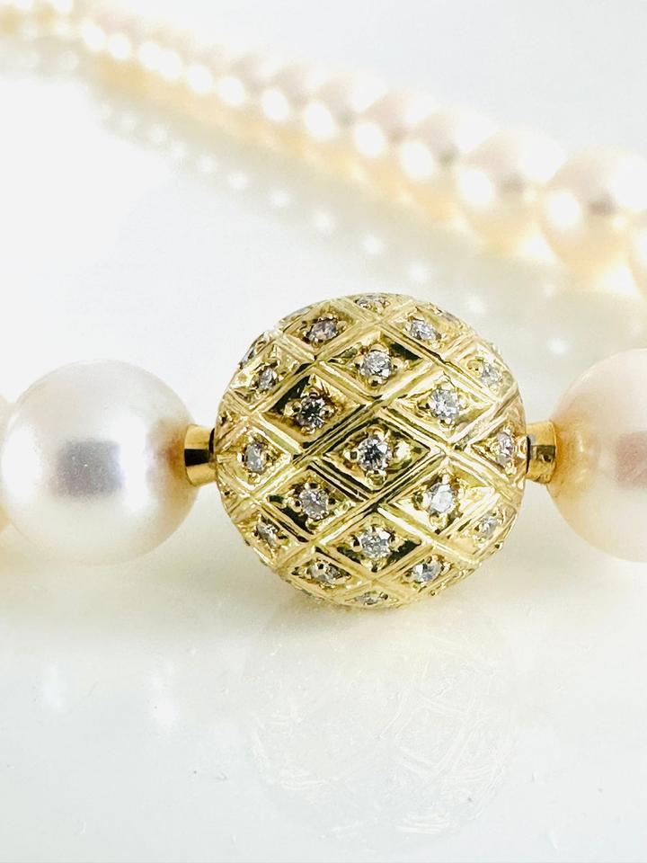 Akoyazuchtperlenkette 585/- Gold mit Schließe mit Brillianten 0,50 ct