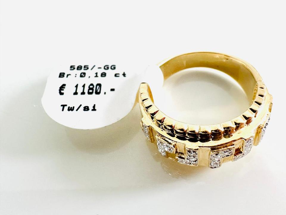 Ring 585/- Gold mit Brillanten 0,18 ct Tw/si Ringweite 54 Breite 5,3 mm Gewicht 5,9 Gramm Juwelierpreis 1180,- Angebot 690,- Das ist ein Festpreis, Versand gegen Vorkasse möglich.