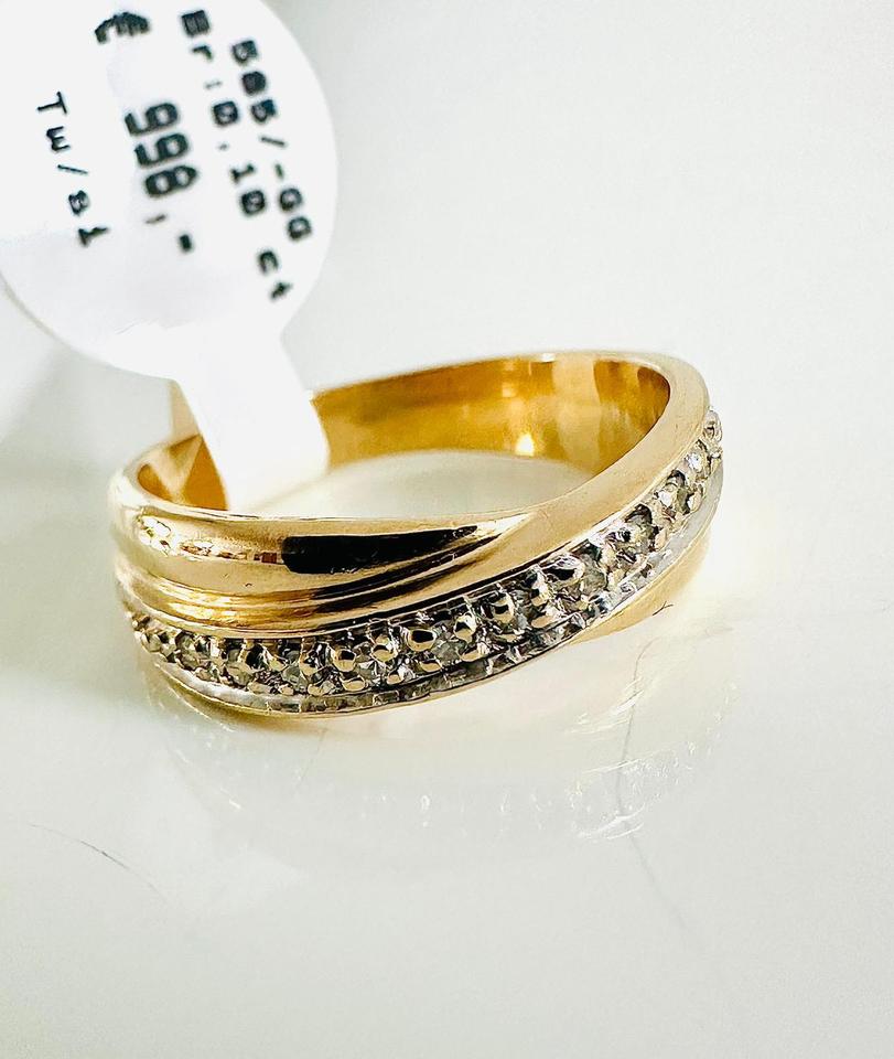 Ring 585/- Gold mit 10 Brillianten 0,10 ct Tw/si Ringweite 57 Ringweite kann ggf geändert werden Ringbreite 6,2 mm Gewicht 4,31 Gramm Juwelierpreis 998,- Angebot 598,- Das ist ein Festpreis, Versand gegen Vorkasse möglich.