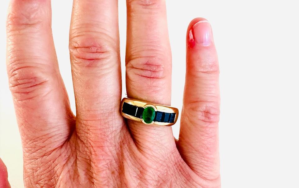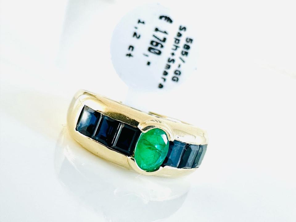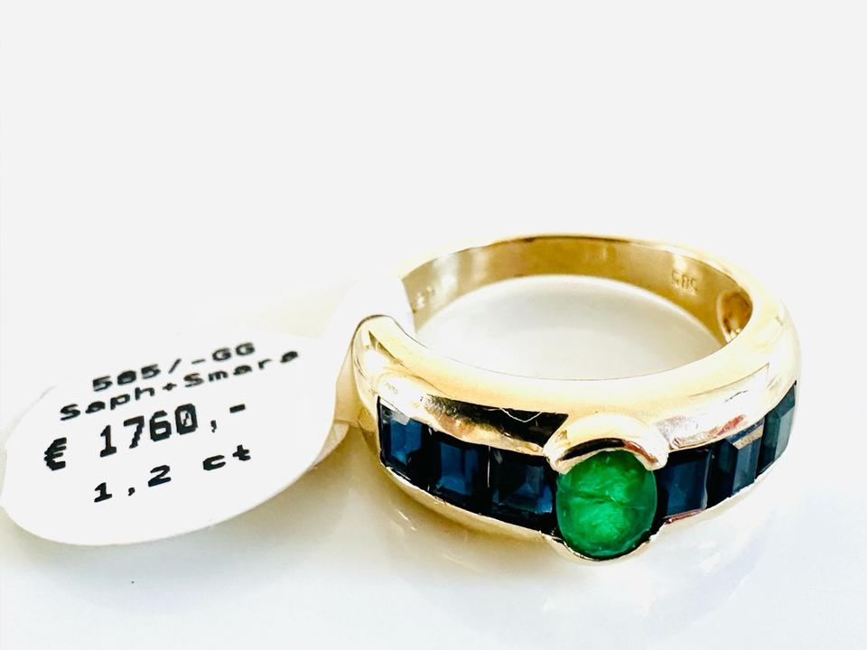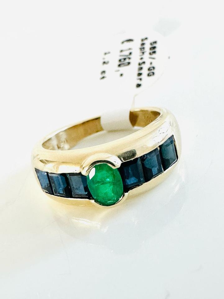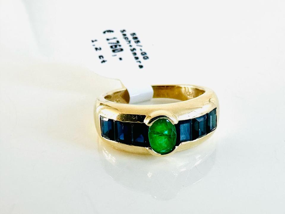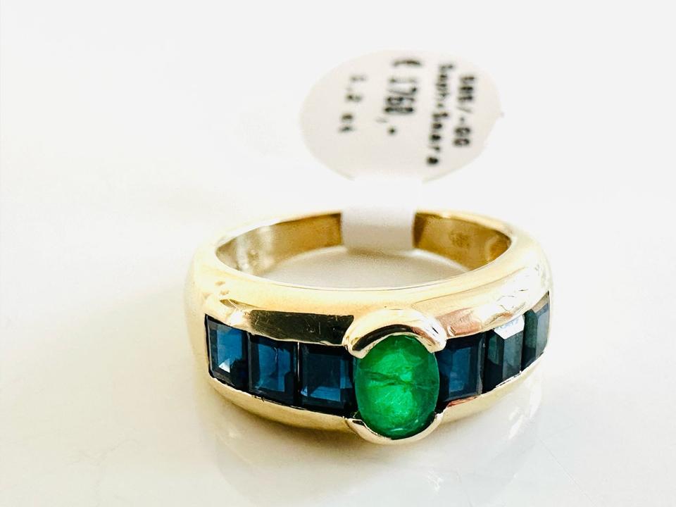 Ring 585/- Gold mit Saphir und Smaragd Ringweite 56 Ringbreite 7,8 6,1 Gramm Gewicht Smaragd 1,2 ct Juwelierpreis 1760,- Angebot 980,- Das ist ein Festpreis, Versand gegen Vorkasse möglich.