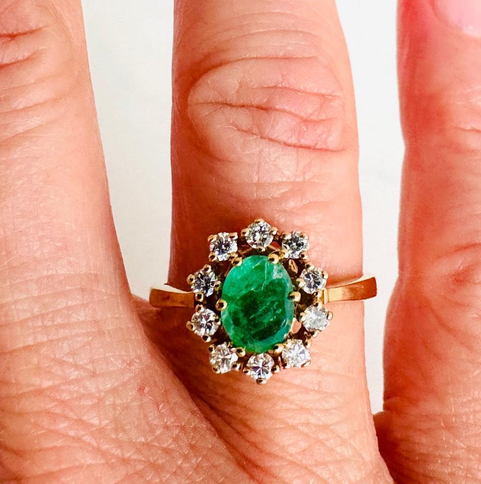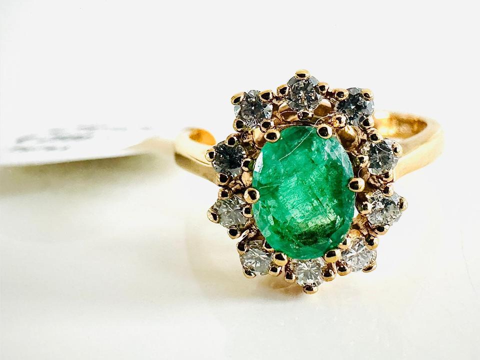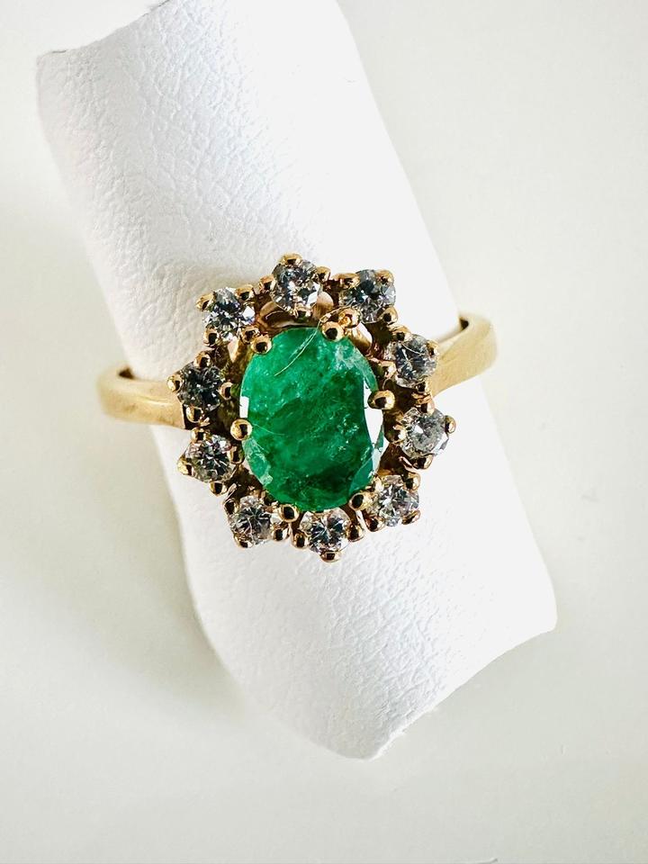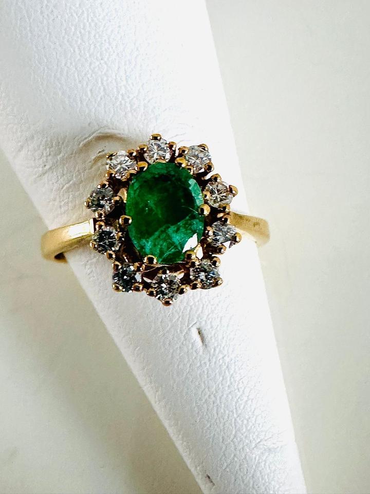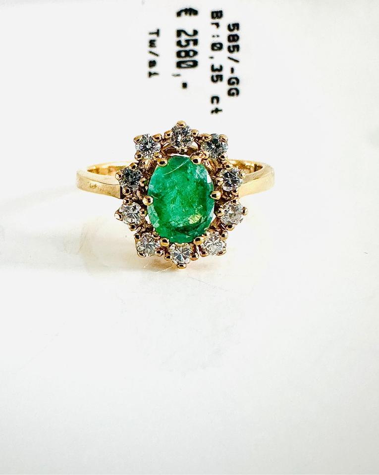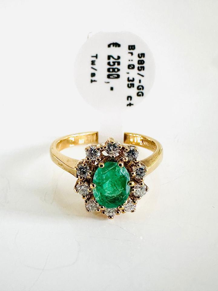 Ring 585/- Gold mit Smaragd und Brillianten 0,35 ct Tw/si