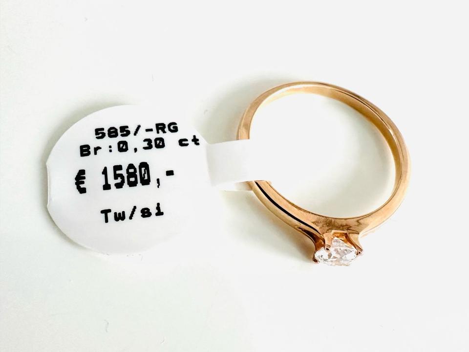 Ring 585/- Rotgold mit Brilliant 0,30 ct Tw/si mit Expertise