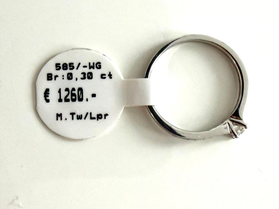 Ring 585/- Weißgold mit Brillianten 0,30 ct Tw/Lupenrein Außen 16 Brillianten 0,15 ct Tw/si Ringweite 54 Ringweite kann ggf geändert werden Juwelierpreis 1260,- Angebot 760,- Das ist ein Festpreis , Versand gegen Vorkasse möglich