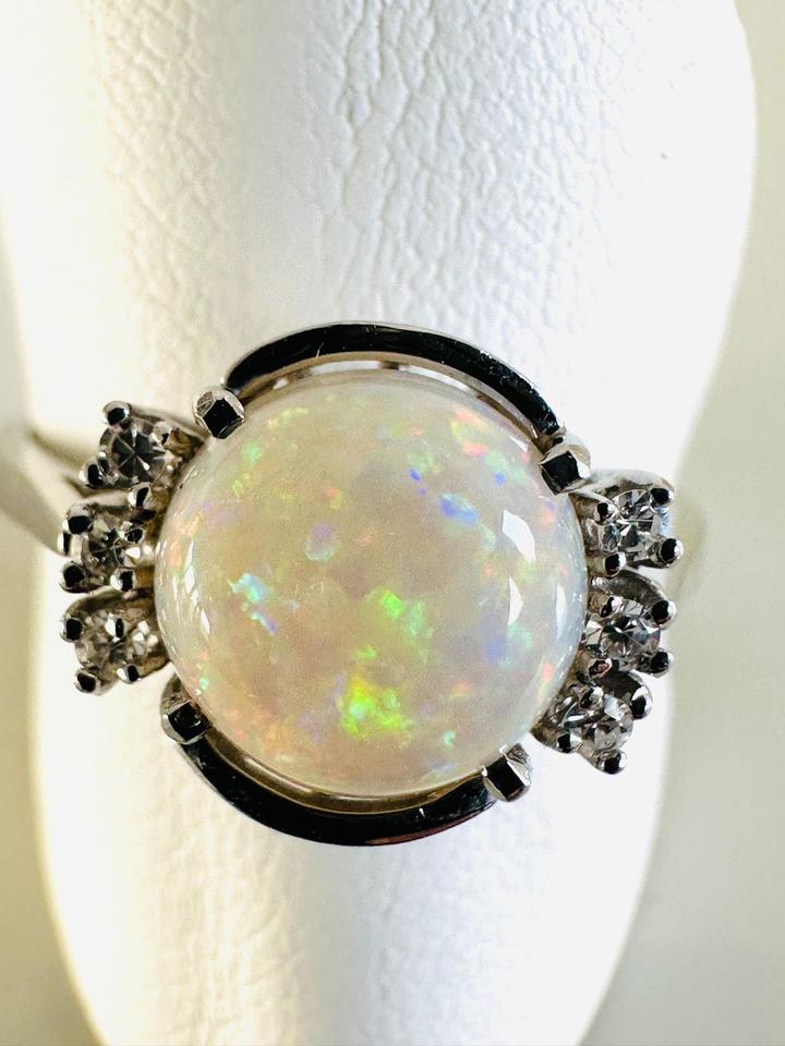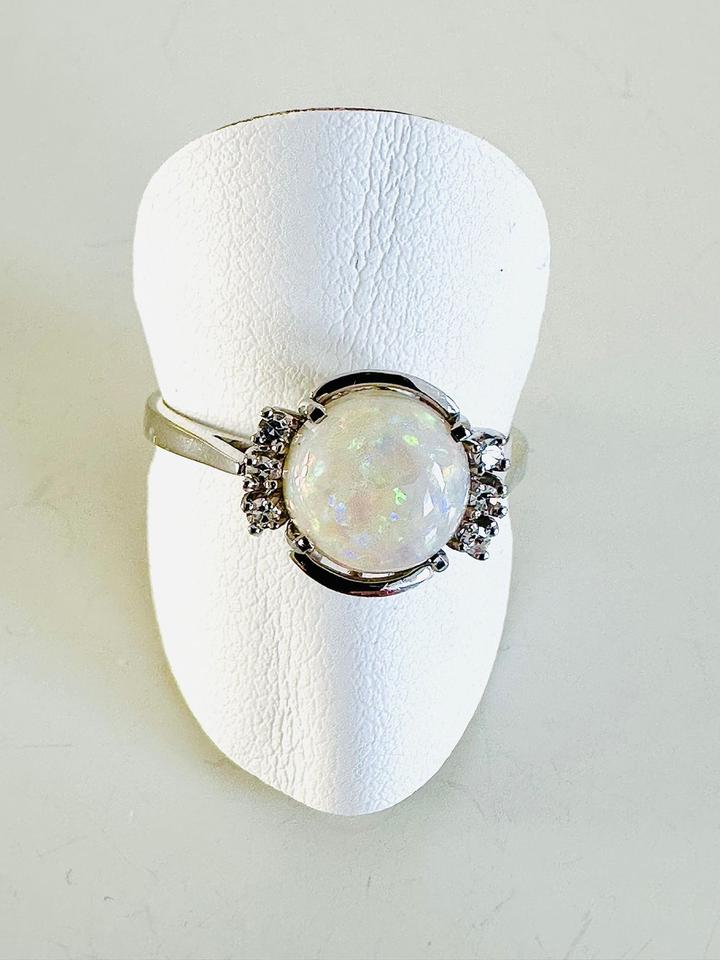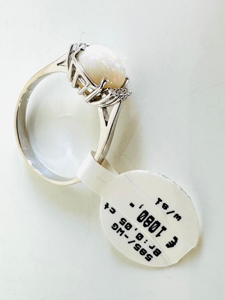 Ring 585/- Weißgold mit Opal und Brillianten 0,05 ct w/si