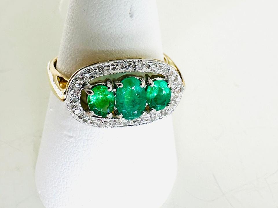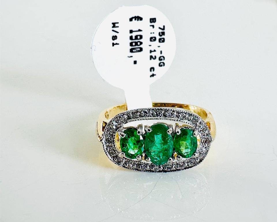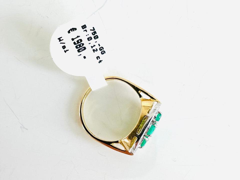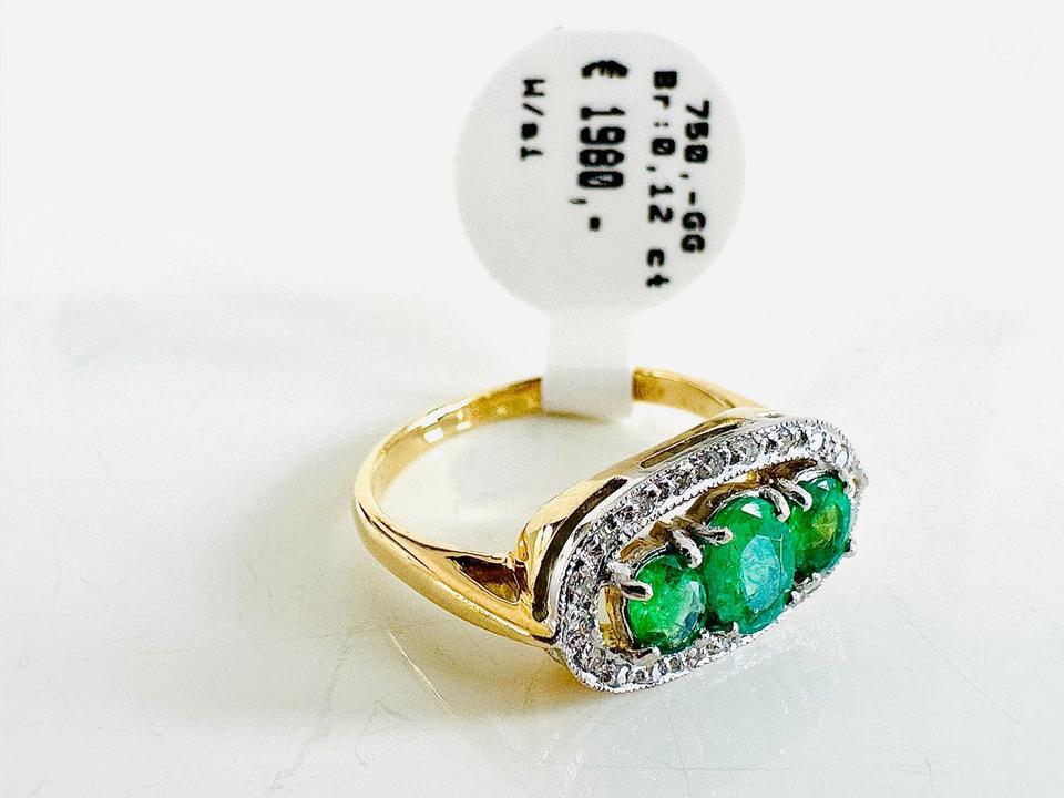 Ring 750/- Gelbgold und Weißgold mit Brillianten 0,12 ct w/si und 3 Smaragde ca 1,0 ct
