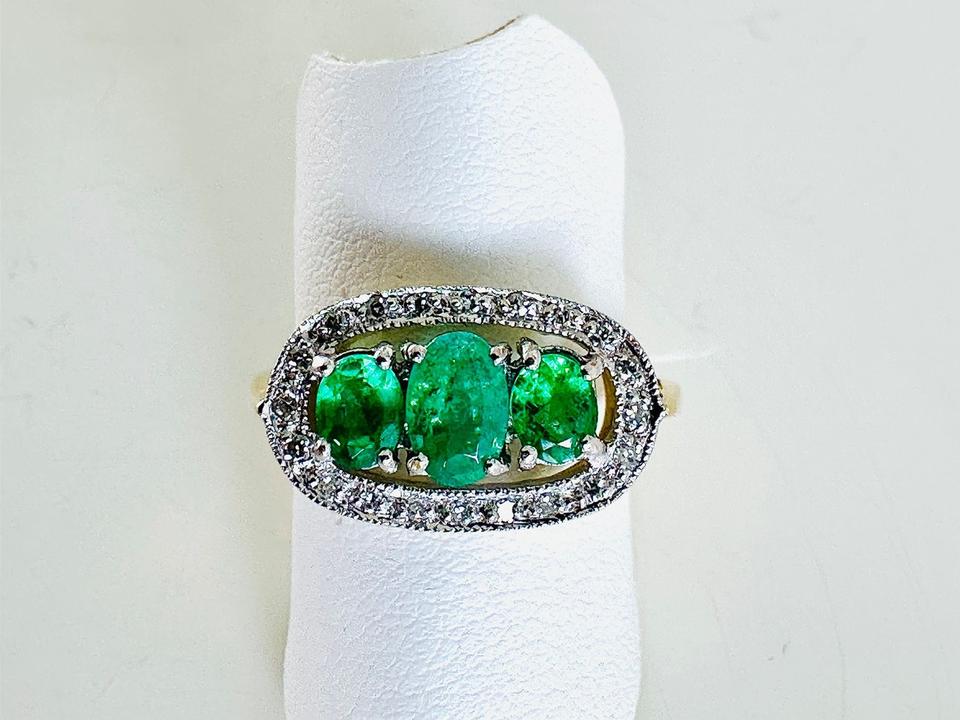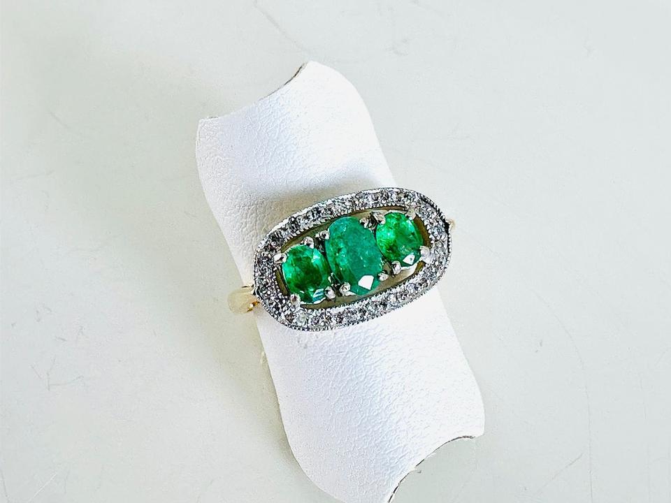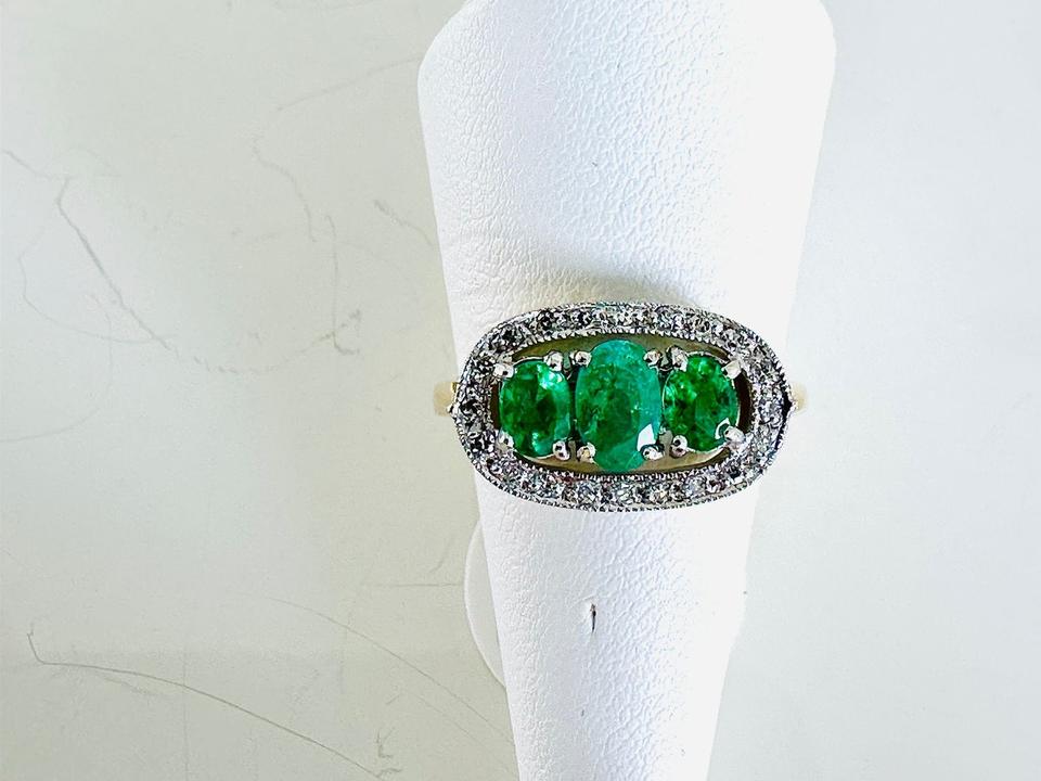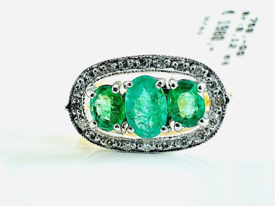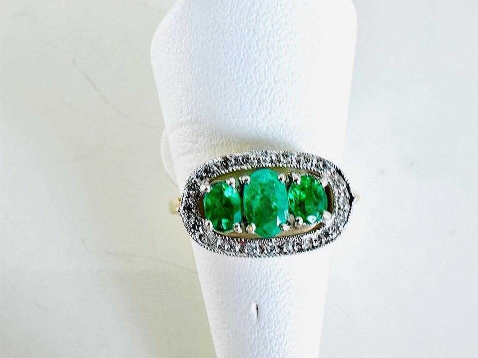 Ring 750/- Gelbgold und Weißgold mit Brillianten 0,12 ct w/si und 3 Smaragde ca 1,0 ct