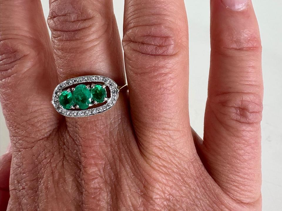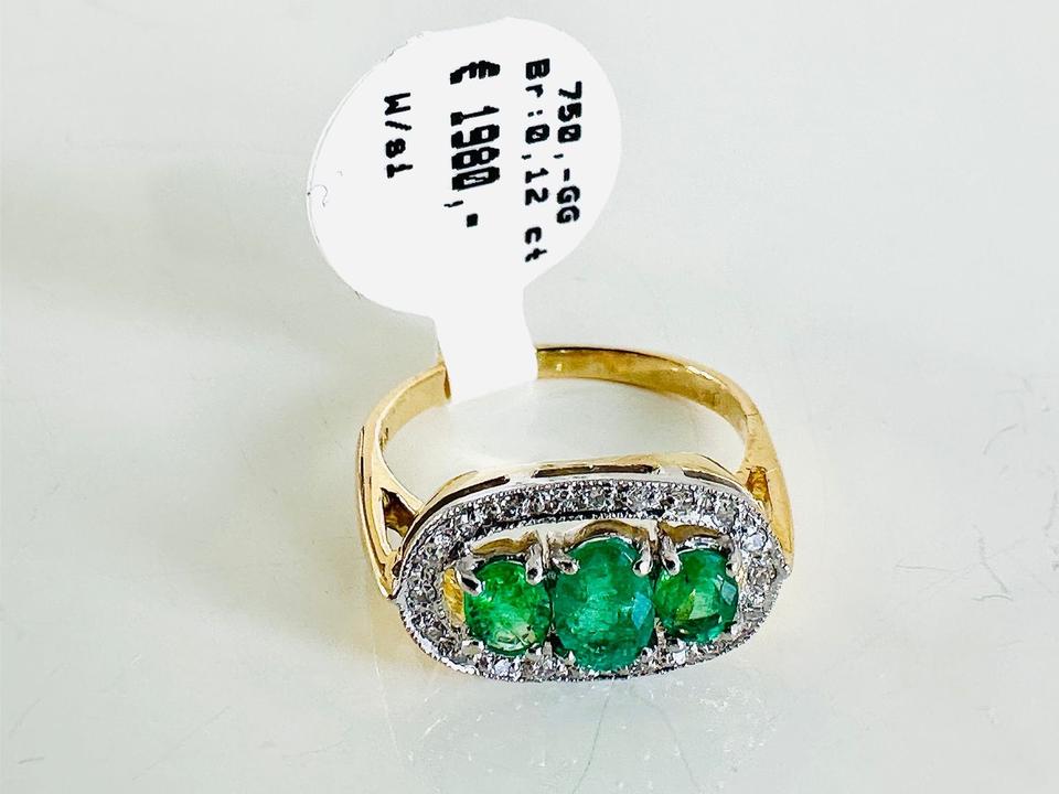 Ring 750/- Gelbgold und Weißgold mit Brillianten 0,12 ct w/si und 3 Smaragde ca 1,0 ct Ringweite 56 Gewicht 4,8 Gramm Juwelierpreis 1980,- Angebot 1180,- Das ist ein Festpreis , Versand gegen Vorkasse möglich.
